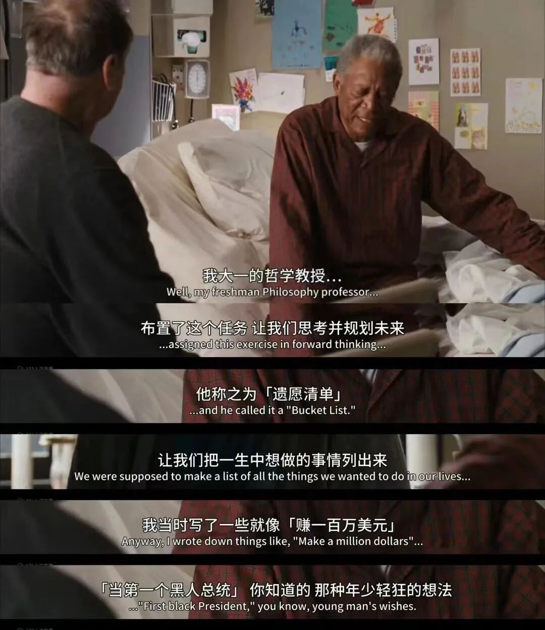 电影讲述了两位身患晚期癌症的病人,如何在他们余下的日子里,以充满丰盛和欢乐的态度去拥抱人生的故事。