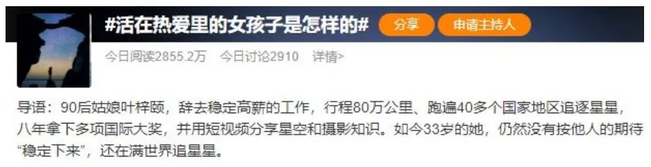 微博热搜上有一个话题:#活在热爱里的女孩子是怎样的#