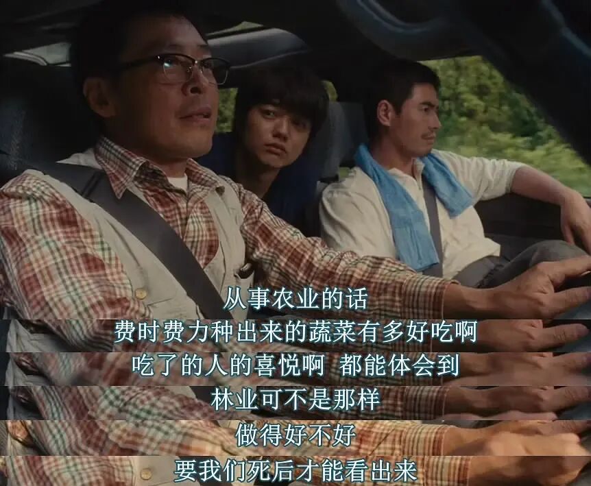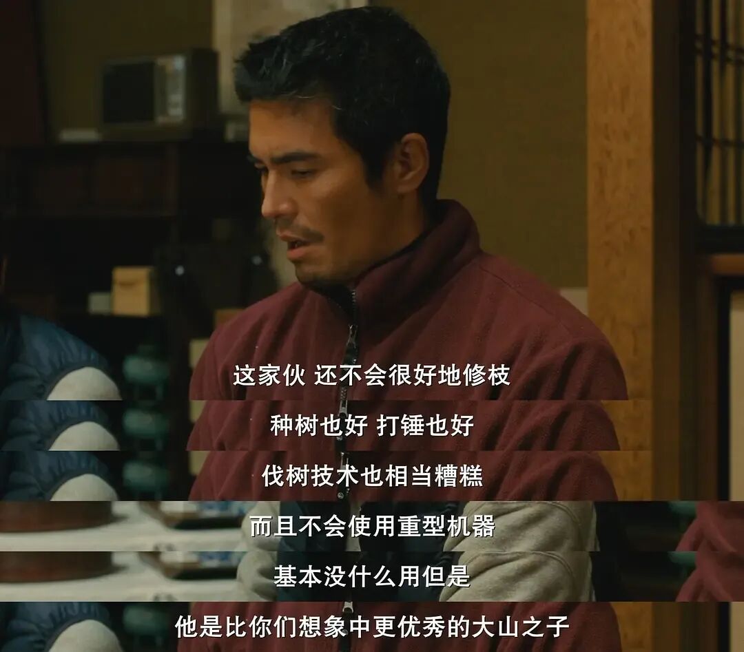 而这个偏僻山村之中淳朴的人情美,人们对树木、自然的敬仰和热爱,也逐渐打动了平野。