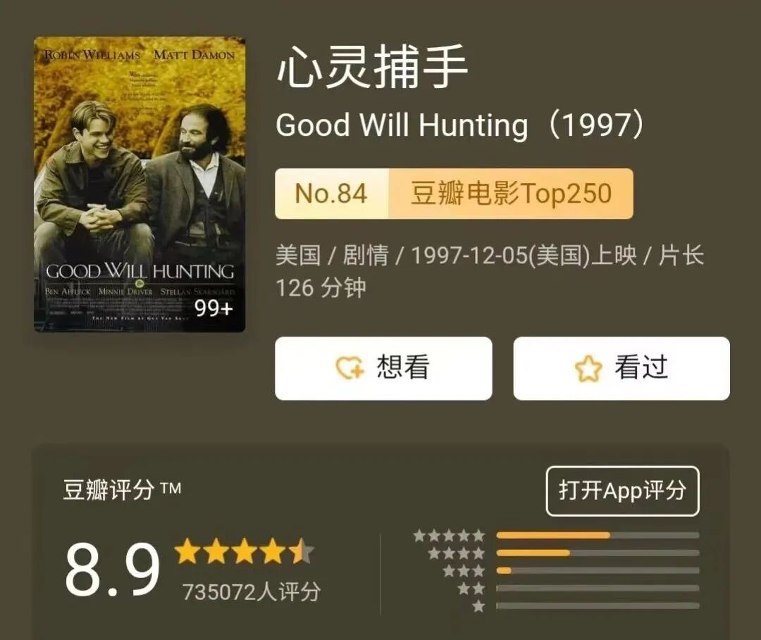 经过六次心理辅导,肖恩不仅教会威尔感受比知识更重要,还让他学会接受自己的不完美。