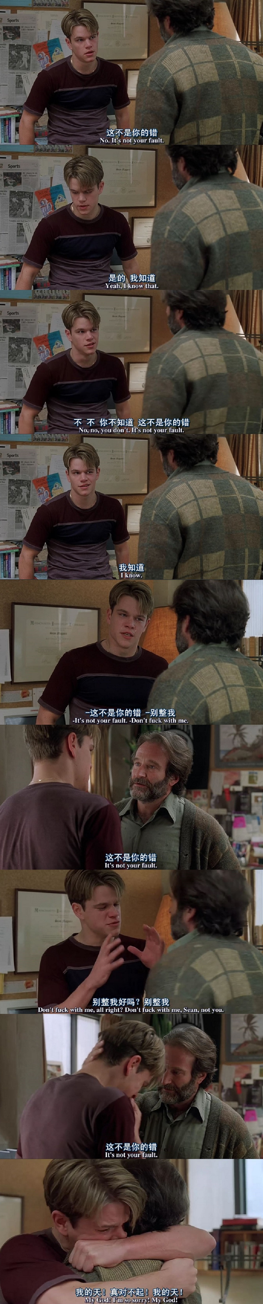 于是,教授请来了大学同学肖恩,一位心理学教师,希望他能帮威尔找到人生方向,治愈内心的创伤。