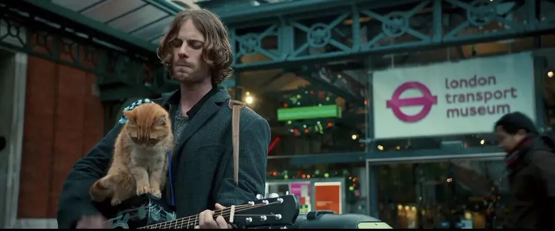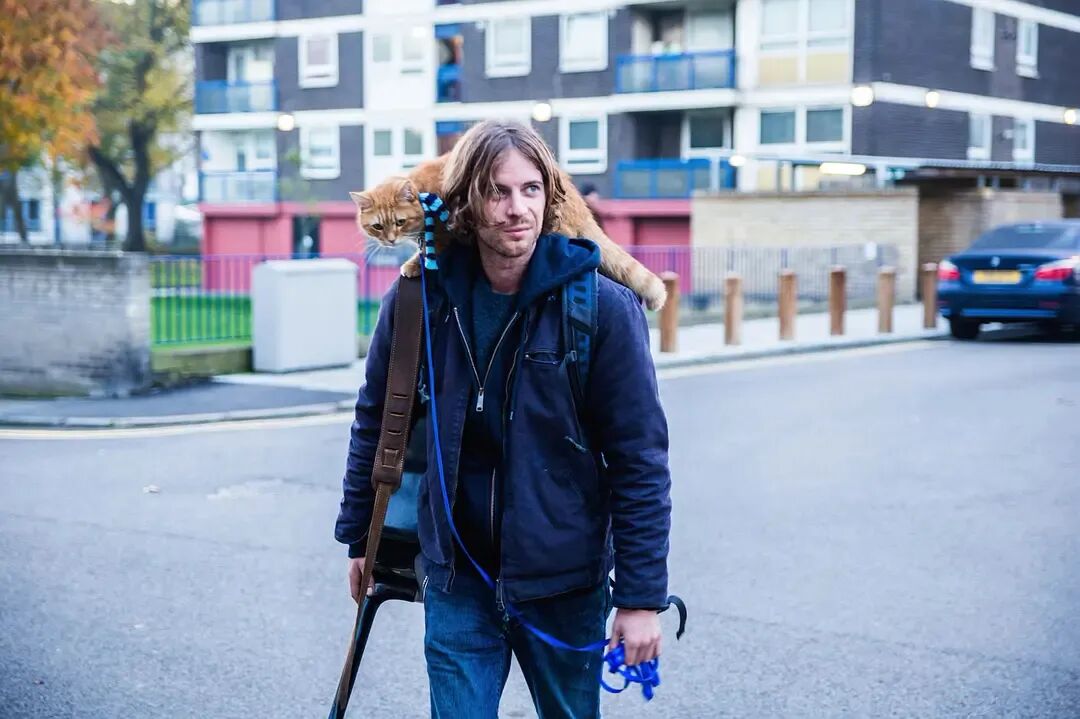 为了养活自己和鲍勃,詹姆斯开始带着它四处奔波,街头卖唱、贩卖报纸……