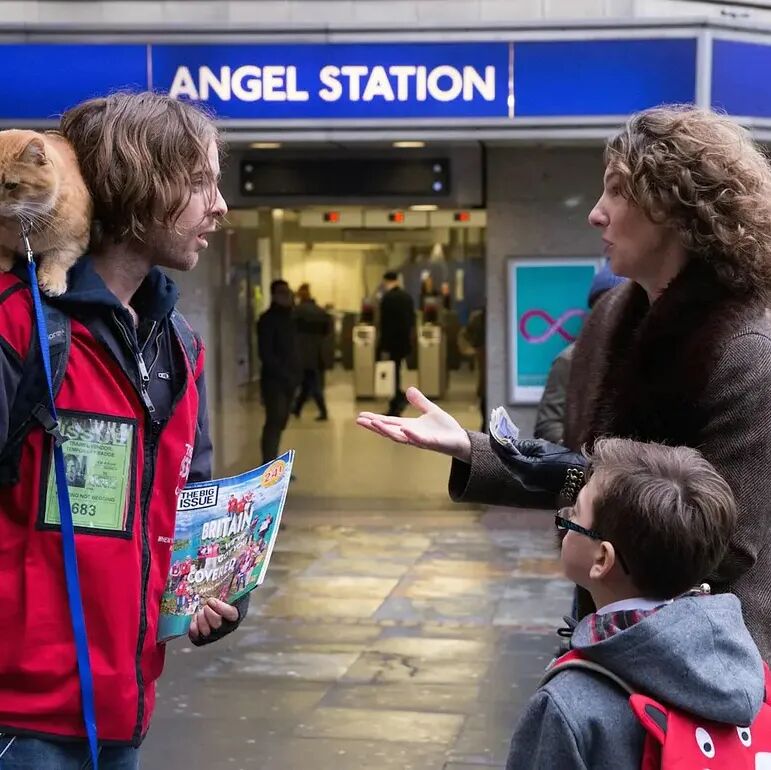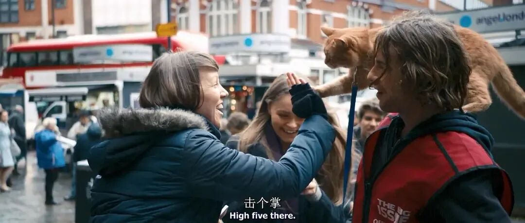 鲍勃的陪伴让他变得更加亲切和受欢迎,曾经令人避之不及的流浪汉竟然摇身一变成为了街头的明星。