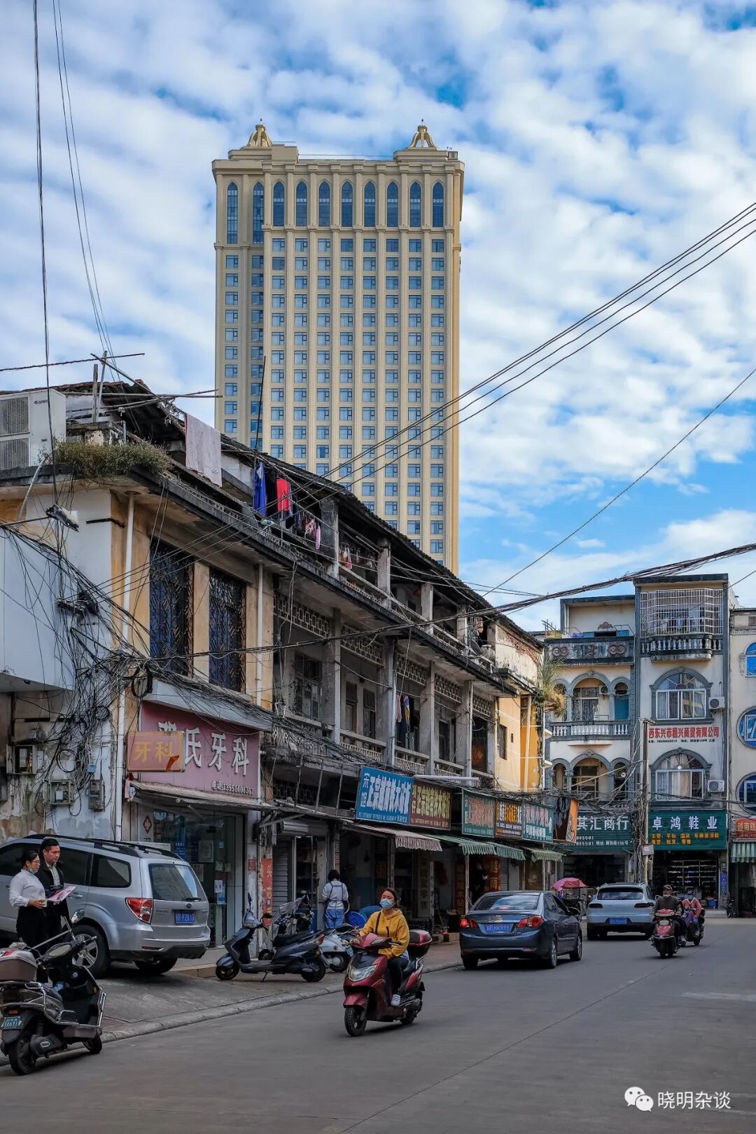 图8、9、10:不同阶段的老房子与新房子。图9的高楼是家五星级酒店,小城第一高楼。