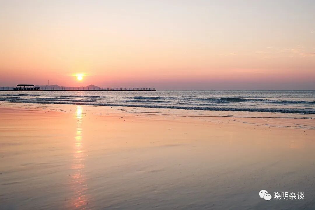 来几张海边日出作为结尾吧。我去的这天,日出时天空没什么云彩,但海水一波波的漫上沙滩,金色的光线洒在水面及沙滩上,仍然美极了,果然是“金”滩。