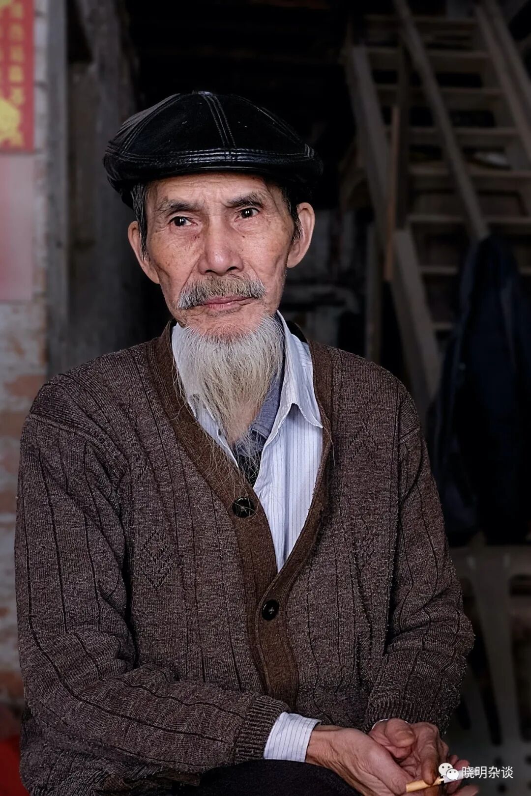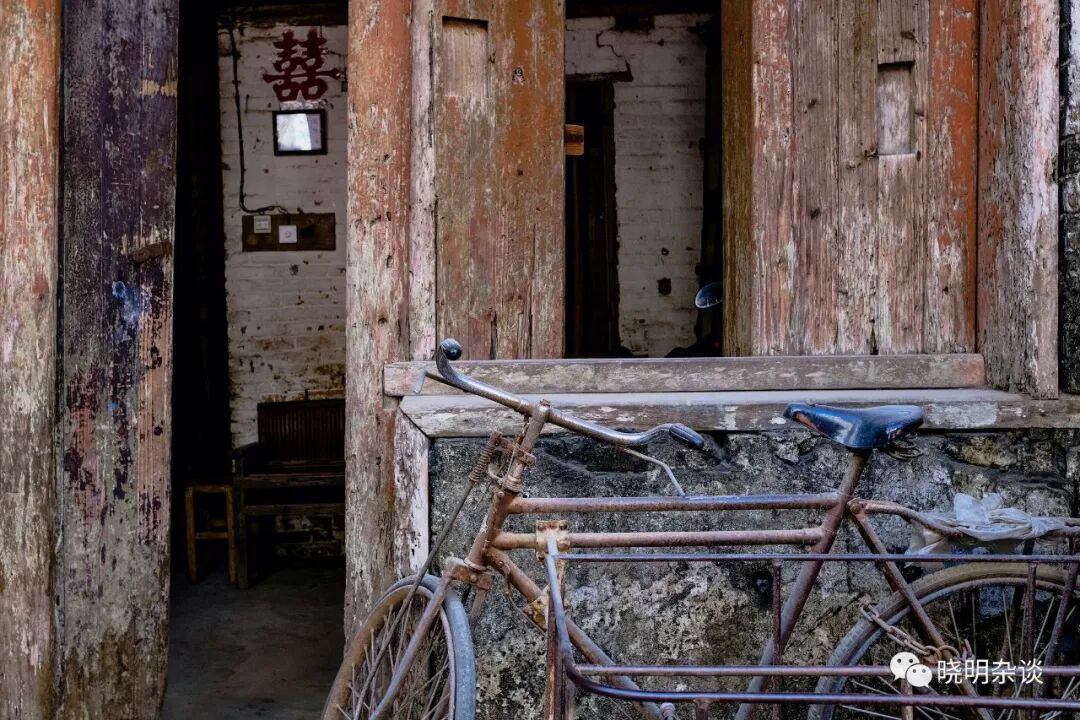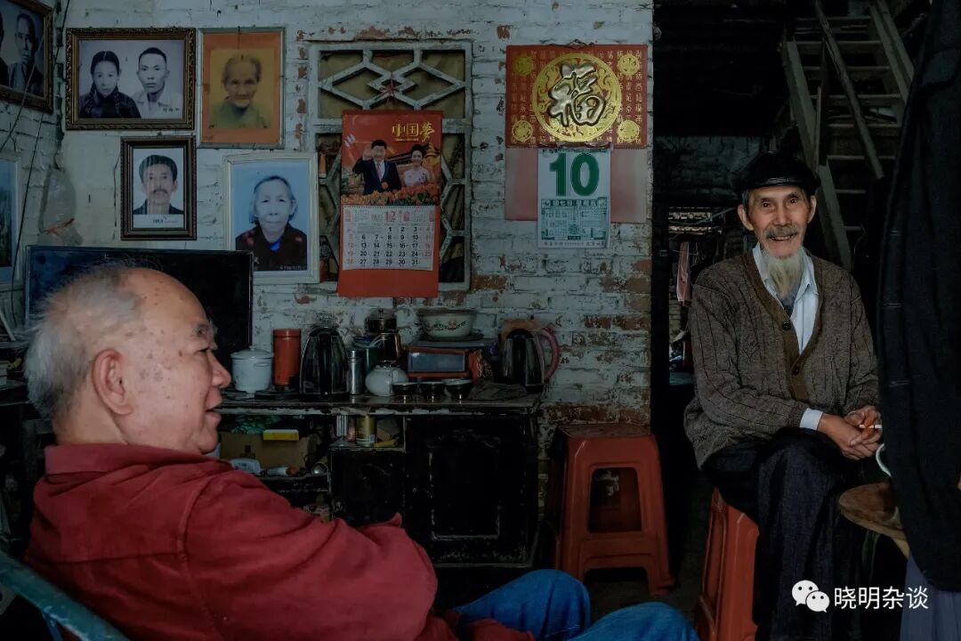 (图13:右边坐着的老人是房子的主人,今年80多岁,看到我在门外拍照,出来询问并邀请我坐下喝茶。听老人家说这房子有100多年了。墙上挂的黑白照可能是他年轻时的结婚照吧,很帅气。)