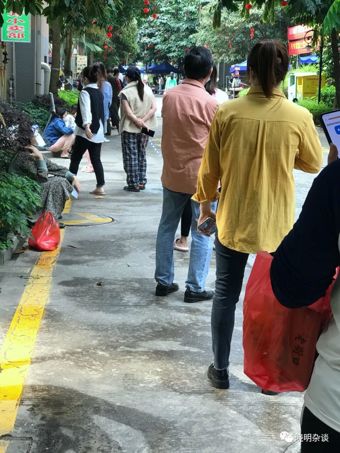 全城严格执行过一次七天每家门口贴封条,除了测核酸外禁止出门。解禁后第一天,买菜买肉的队伍排得特别长,每个人都买得格外多,我排了2个小时买了些菜。据说,有些老人家,早上6点半开始下楼排队,到10点半才把菜和肉分别买齐。有些人站得累了,就在路边坐一会。(手机拍摄)