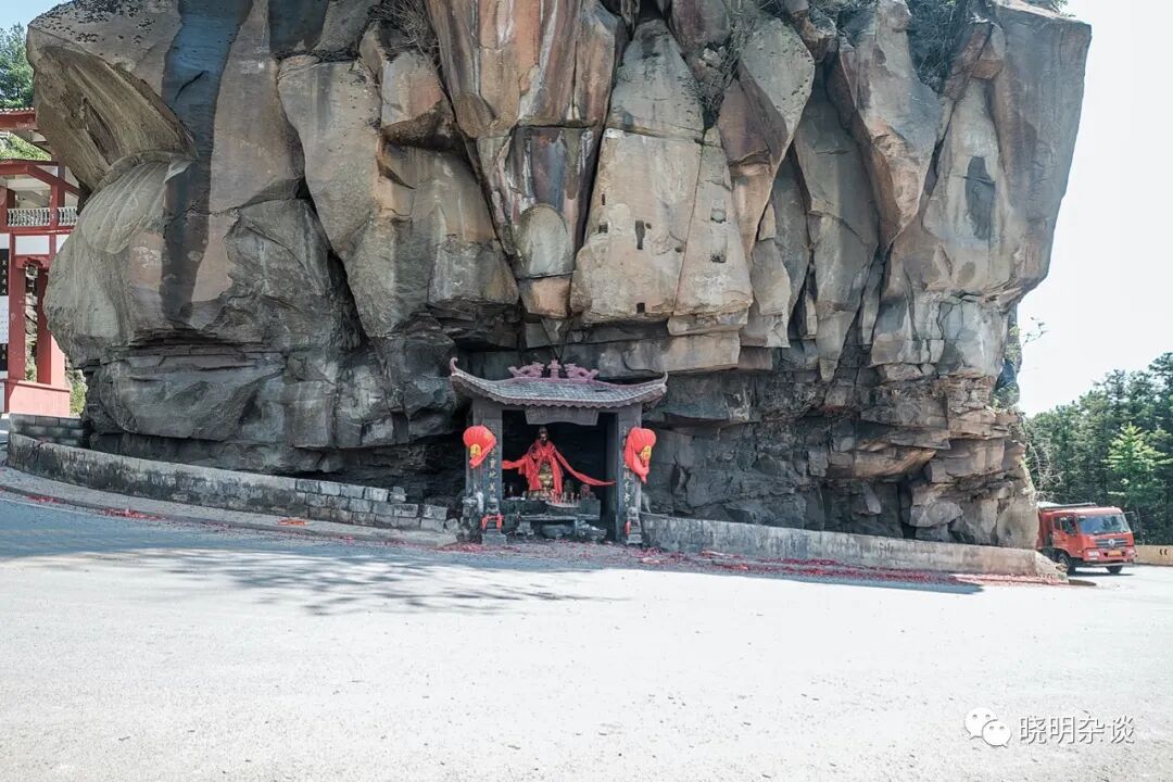 (图8: 铜锣关,当地人建了个小小的铜锣阁,看起来香火还挺旺。这个环山陡坡,我是直接骑上来的。)