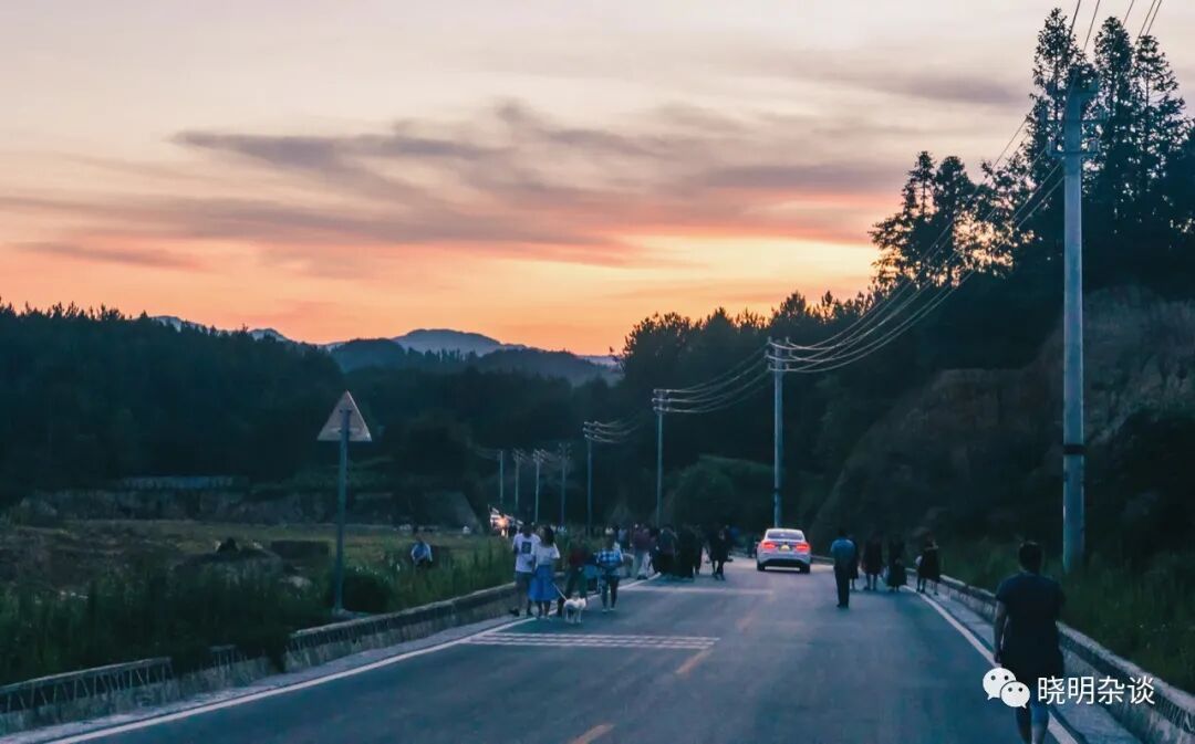 晚饭之后的乐趣,是晚霞之下,山间公路上,好友家人们一起散步、遛娃遛狗。