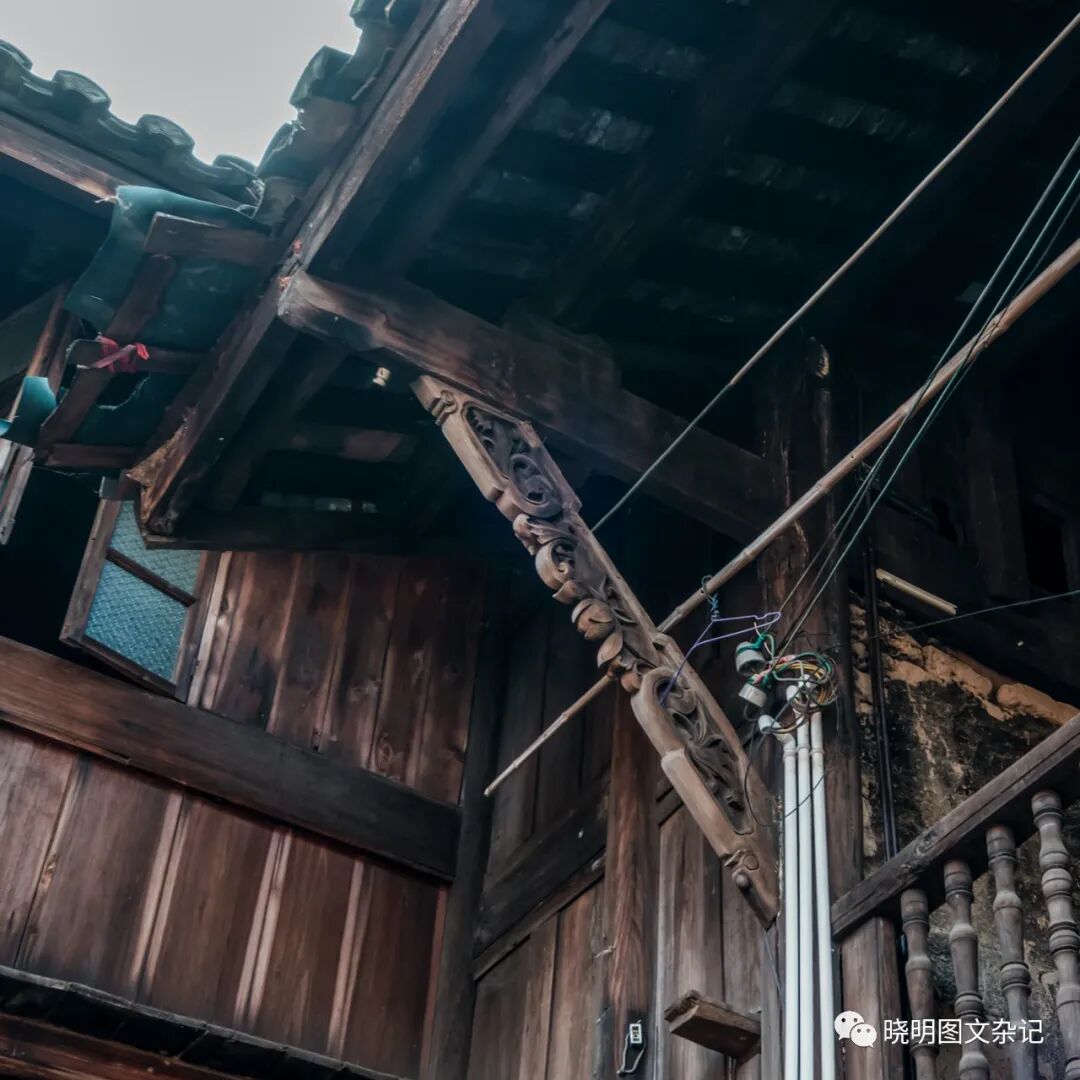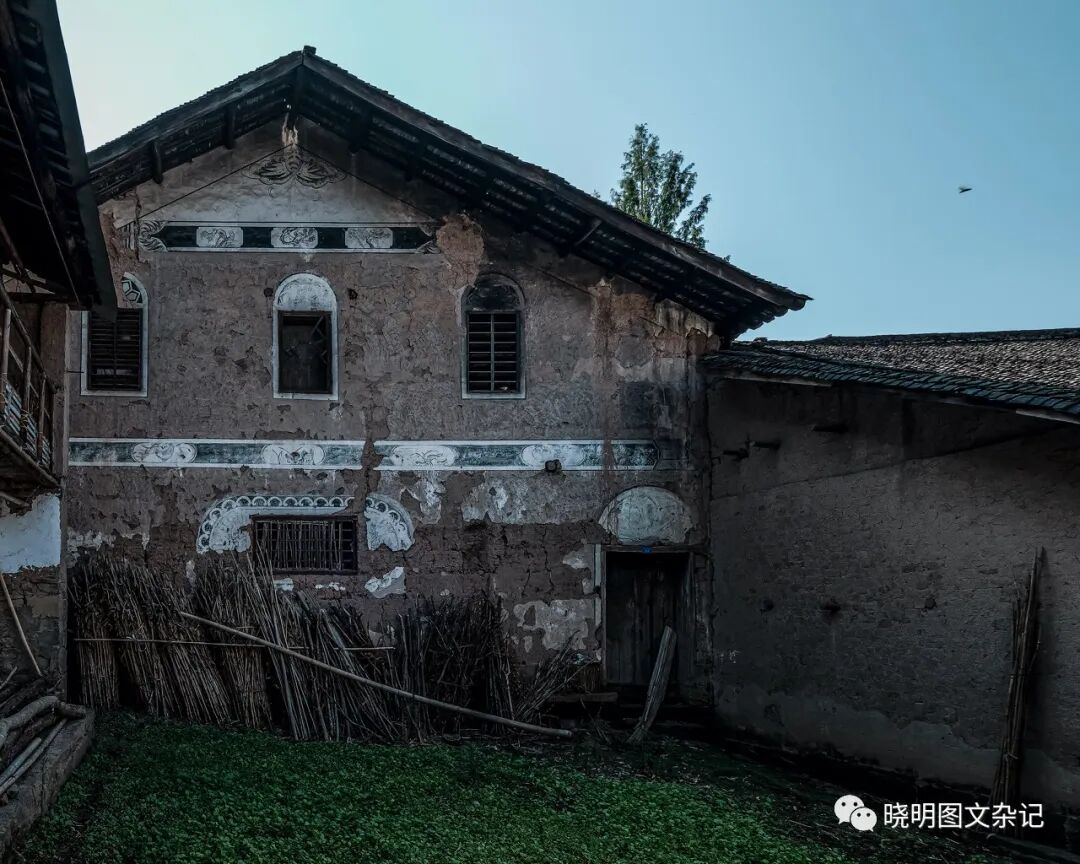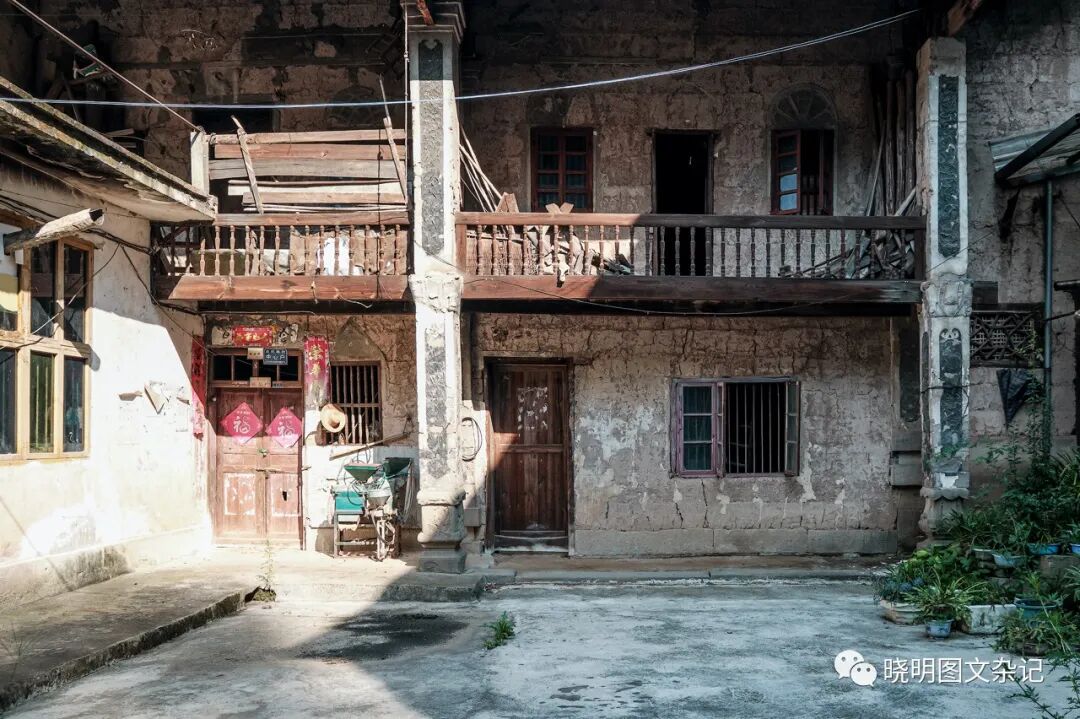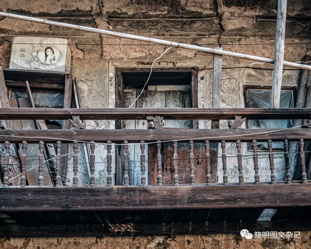 可以依稀看出房子墙上原本有精细的雕花,二楼栏杆的设计也花了些心思。