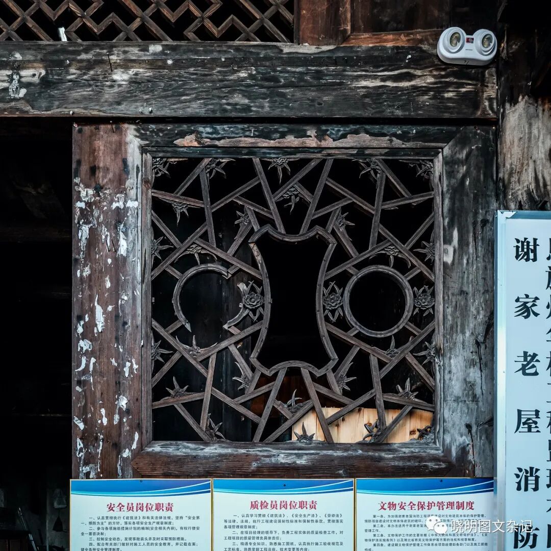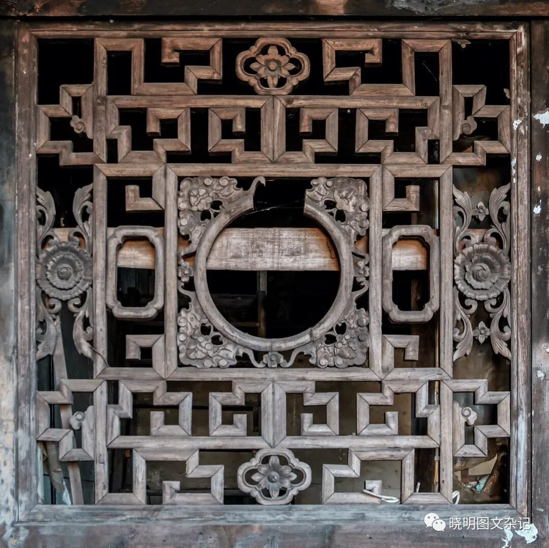 下面图6这扇窗户的制作更为繁复考究,里面应该是主人卧室。窗户最中间小正方形,四角刻的是蝙蝠图案,据说现在空缺的中心那里原有个“福”字,合起来是个五福图,寓意长寿、富贵、康宁、好德、善终。