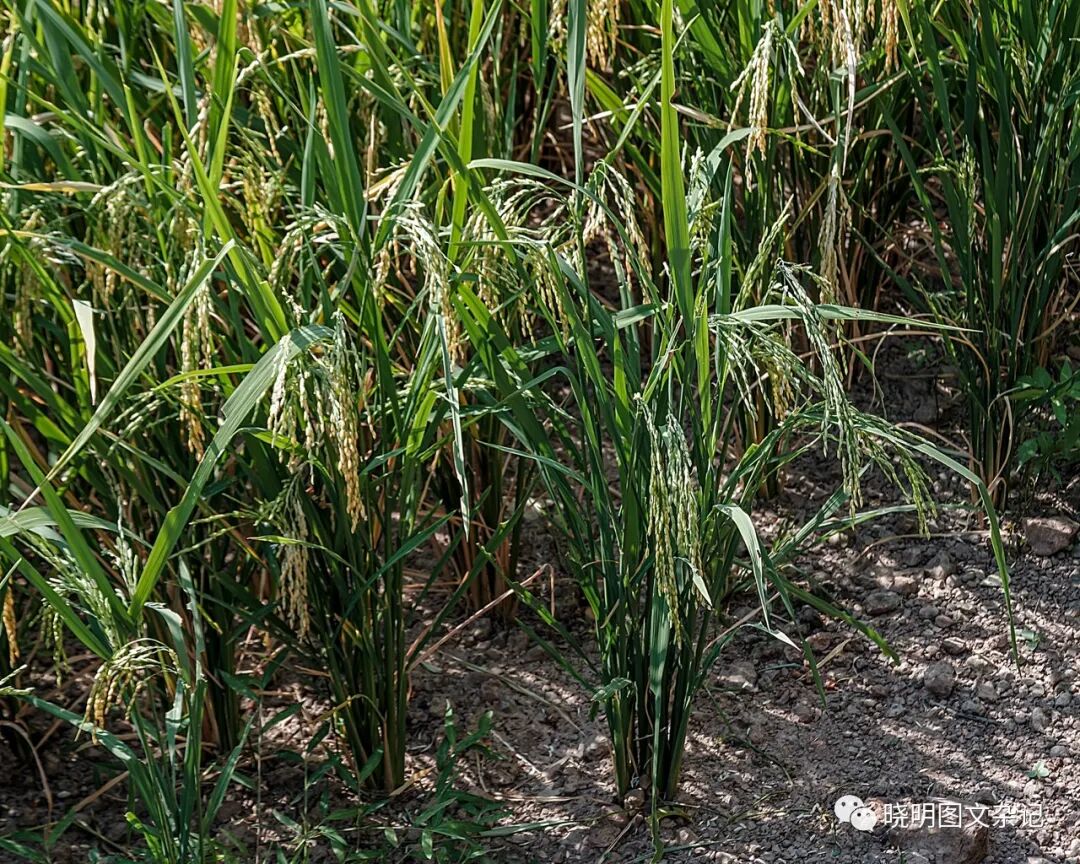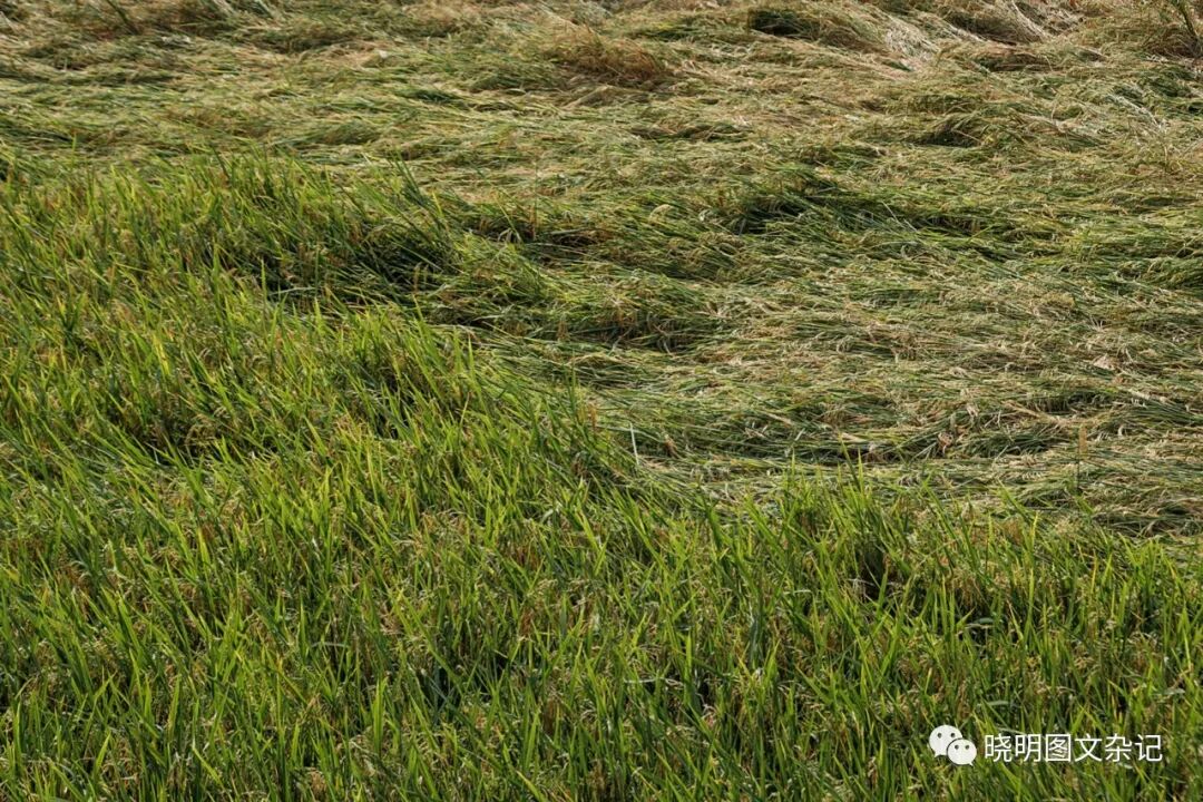 (图2:因为缺水,根茎不够粗,水稻抽穗后纷纷倒伏了。)