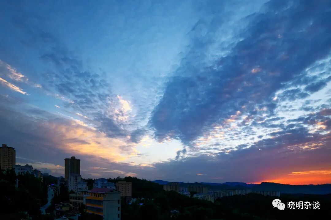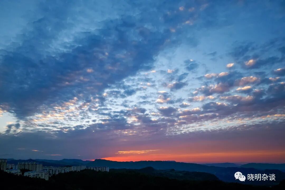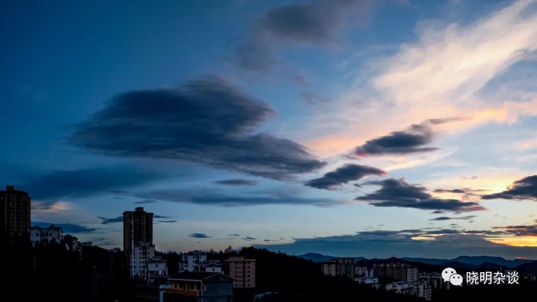 最后这张,其实当天的云层很厚,没有很亮的霞光,但是,乌云本身,在蓝色背景下,成了一幅动感的画卷。