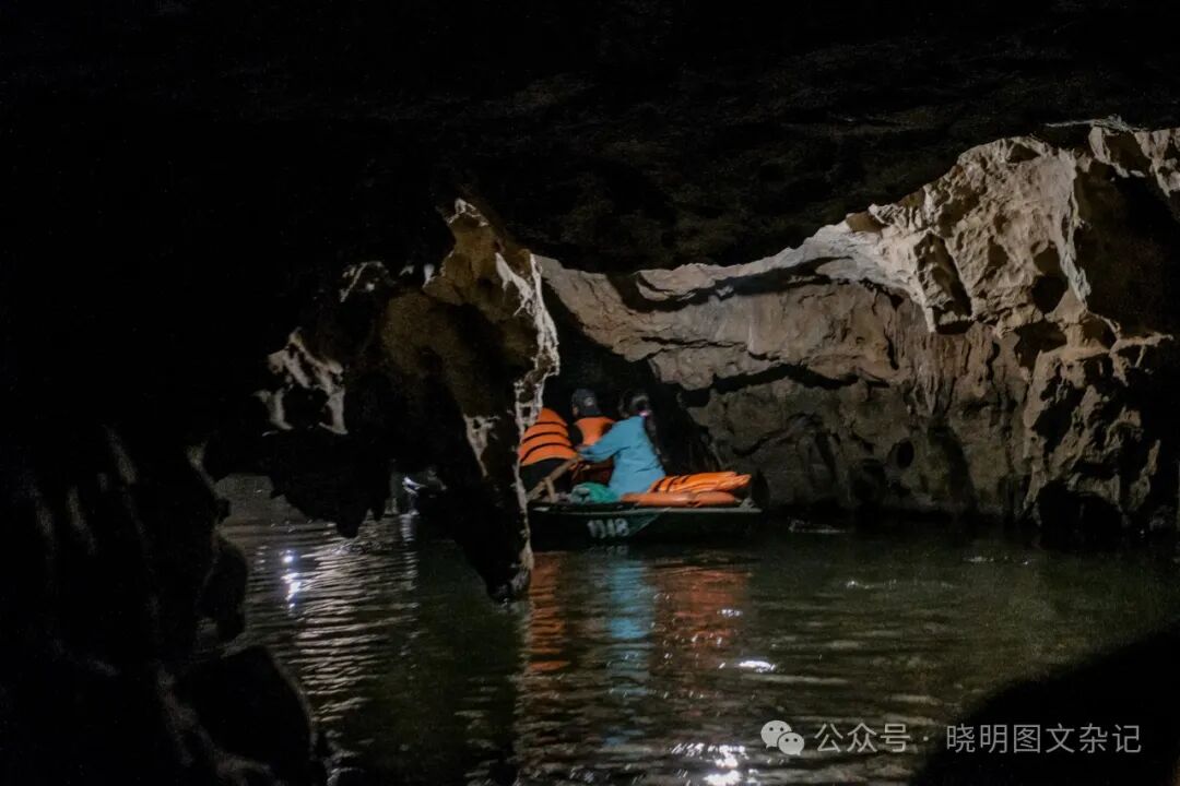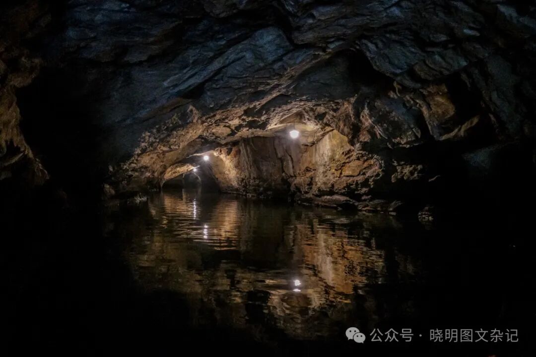 长安游船路线最主要的特色,是沿途要穿过几个狭窄的山洞。有三条路线选择,我选择的是山洞最多的一号线。这条线路的第一个洞最长,也最为刺激。船在里面划行了约10多分钟,除了偶尔的日光灯,漆黑一片,洞时而宽阔,时而狭窄,时而头顶有钟乳石需要避让,时而又感觉船体要撞到洞壁,时而看到亮光以为要出洞了,却随即又陷入黑暗中,情绪一波三折,耳边时常有同船人的尖叫,和女船夫“弯腰!弯腰!”的提醒声。可惜因为洞里温度比外面高,我的相机镜头蒙上了一层水雾,没有能留下一张可看的照片。