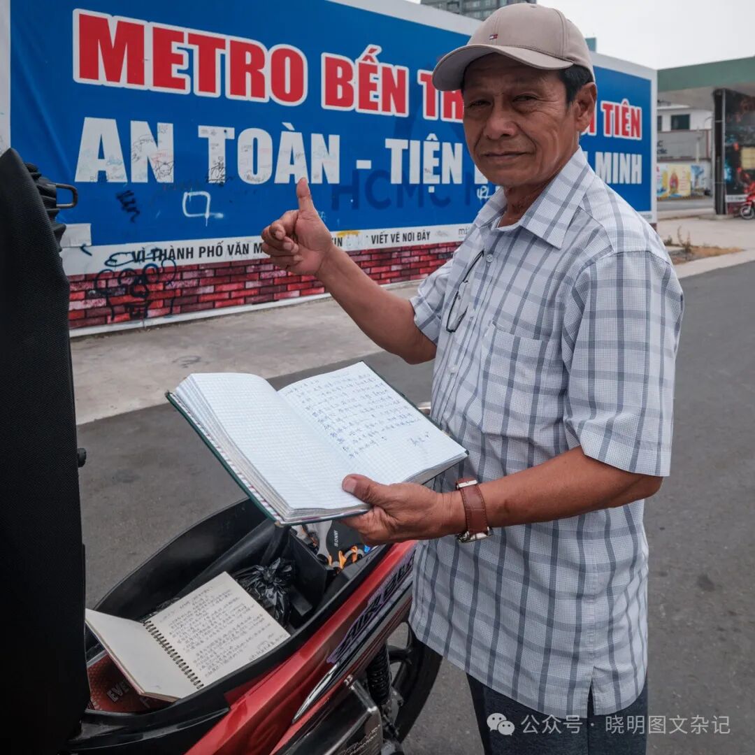 图3中这位老大爷,开着摩的在槟城市场一带拉客。听说我是中国人后,给我展示了他的两个笔记本,翻开的2页是两个中国女生长长的留言,大意都是老大爷非常热情,服务很让她们感动,使她们深切感受到越南人的友善。)