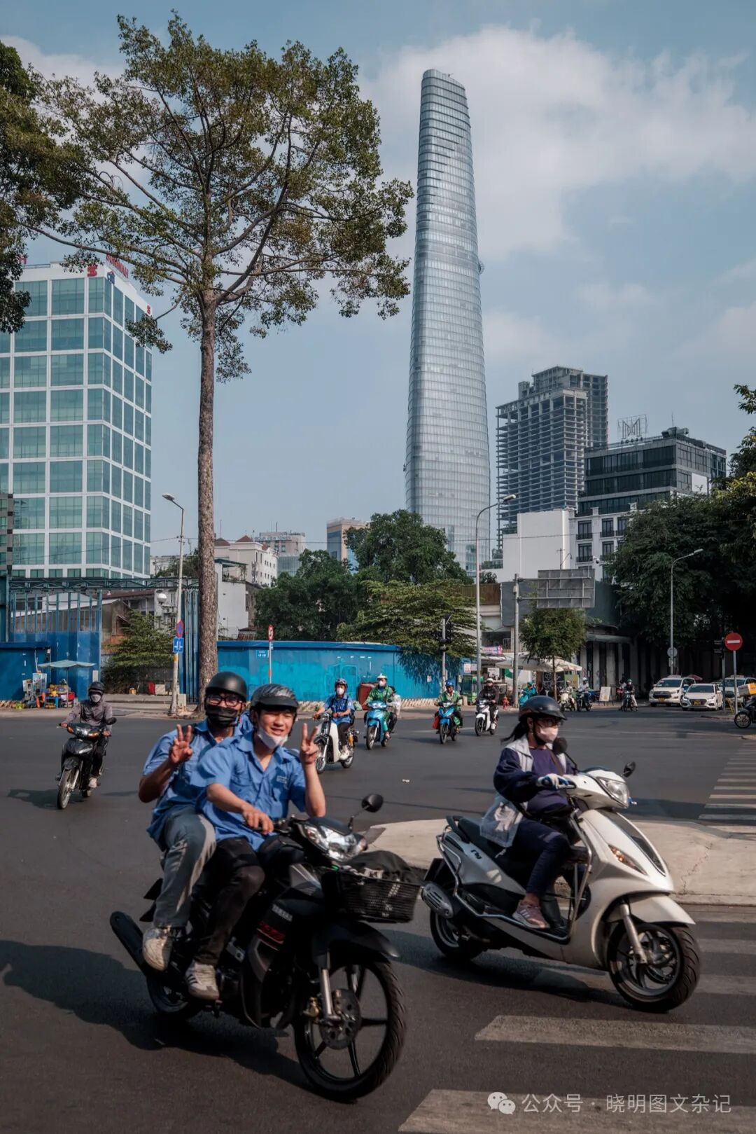 图2的背景是“文康地标塔81”,越南第一高楼。路上的摩托车川流不息,两个小伙子在疾驰而过时,微笑着对我的相机镜头打出V手势。对游客的热情友好,和我们在越南其他地方的印象是一致的。