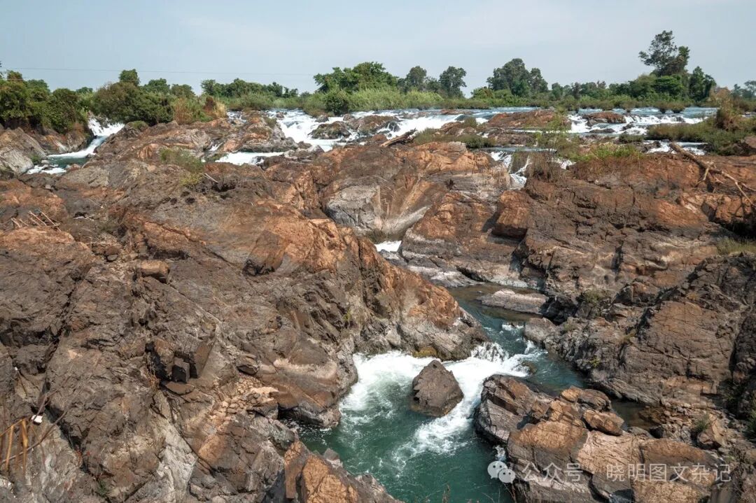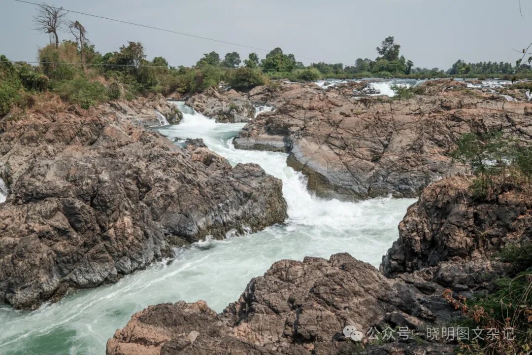 (图35 :东昆岛的利菲瀑布群,现在可能是一年中水位最低的时候,枯石比水流醒目。东孔岛上有所谓东南亚最宽的瀑布,风景应该好一些,我没有去。)