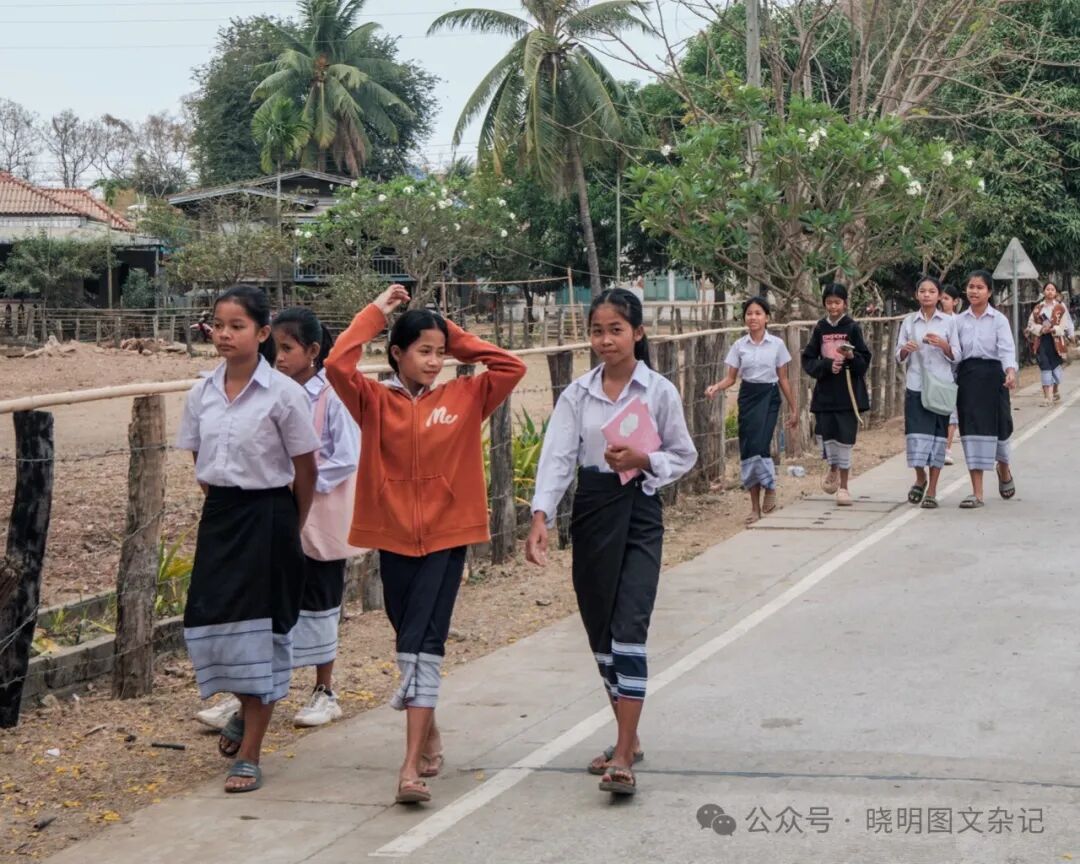 路过一所学校,遇到正在上学的孩子们,穿的基本是拖鞋,女孩子特别多。