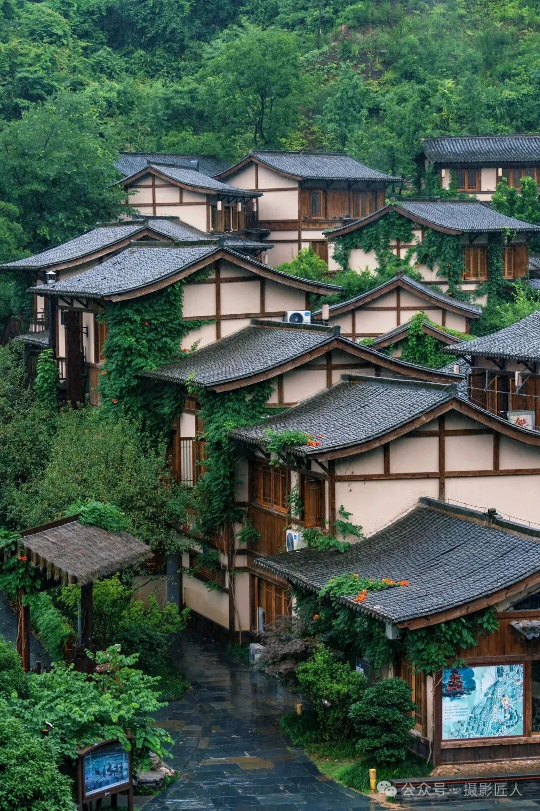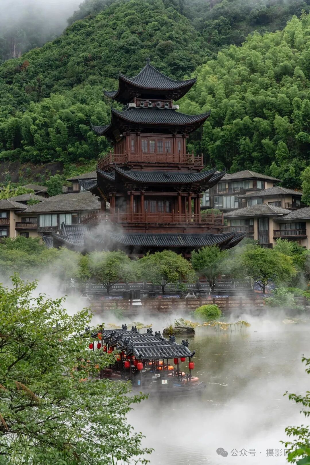 雨中的葛仙村仿佛一幅飘渺的中国山水画卷,雾气缭绕于青山绿水之间,意境深远。