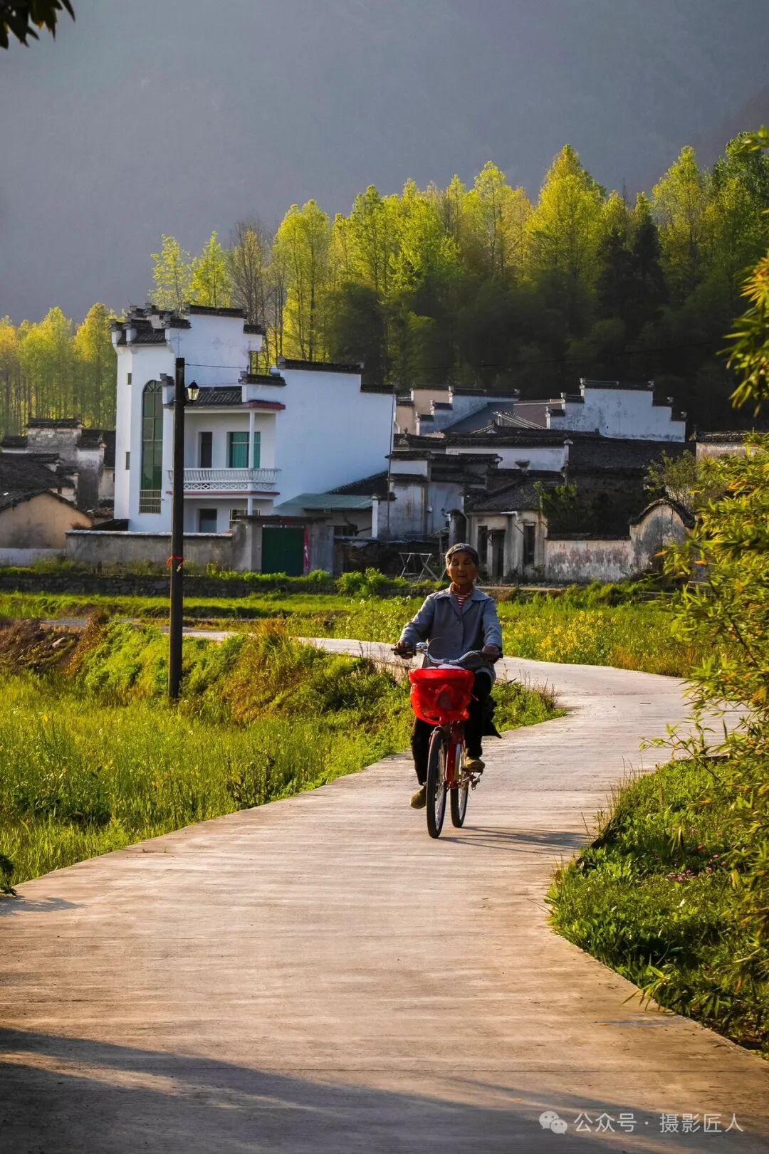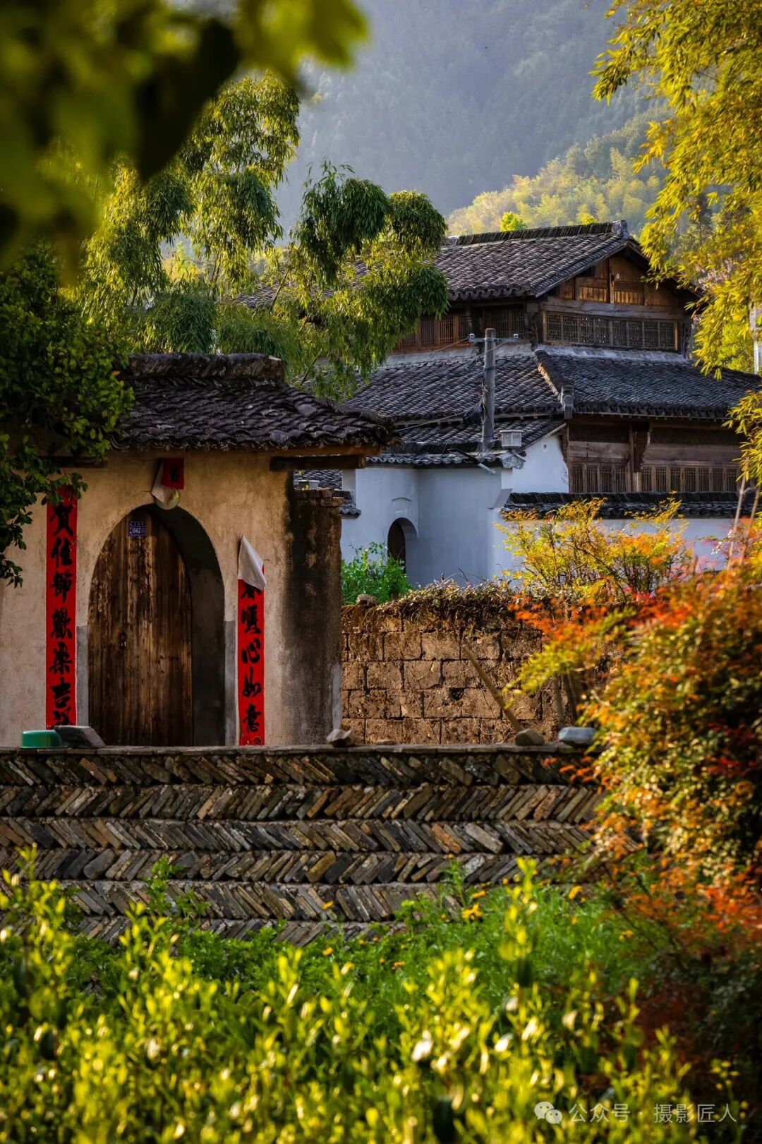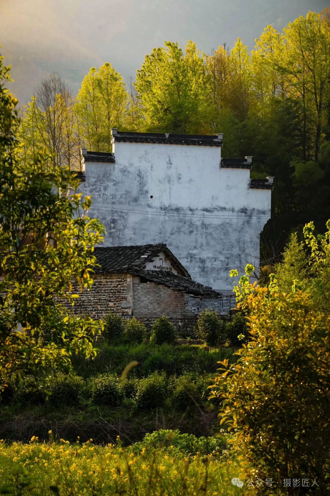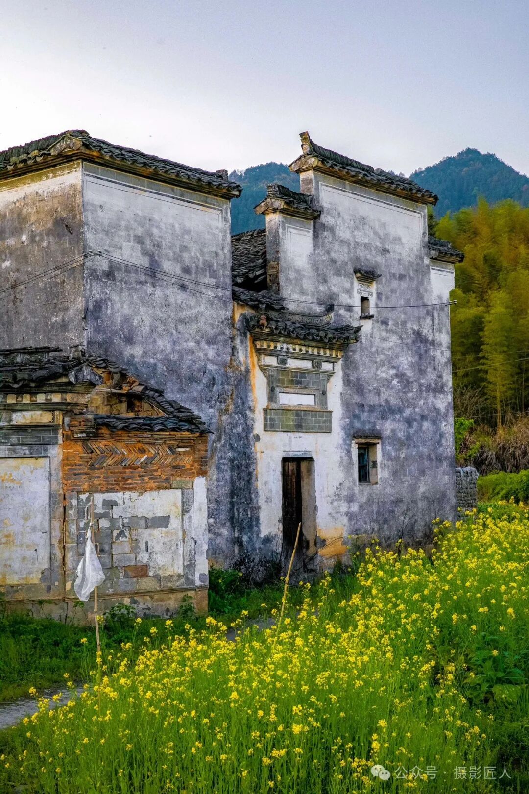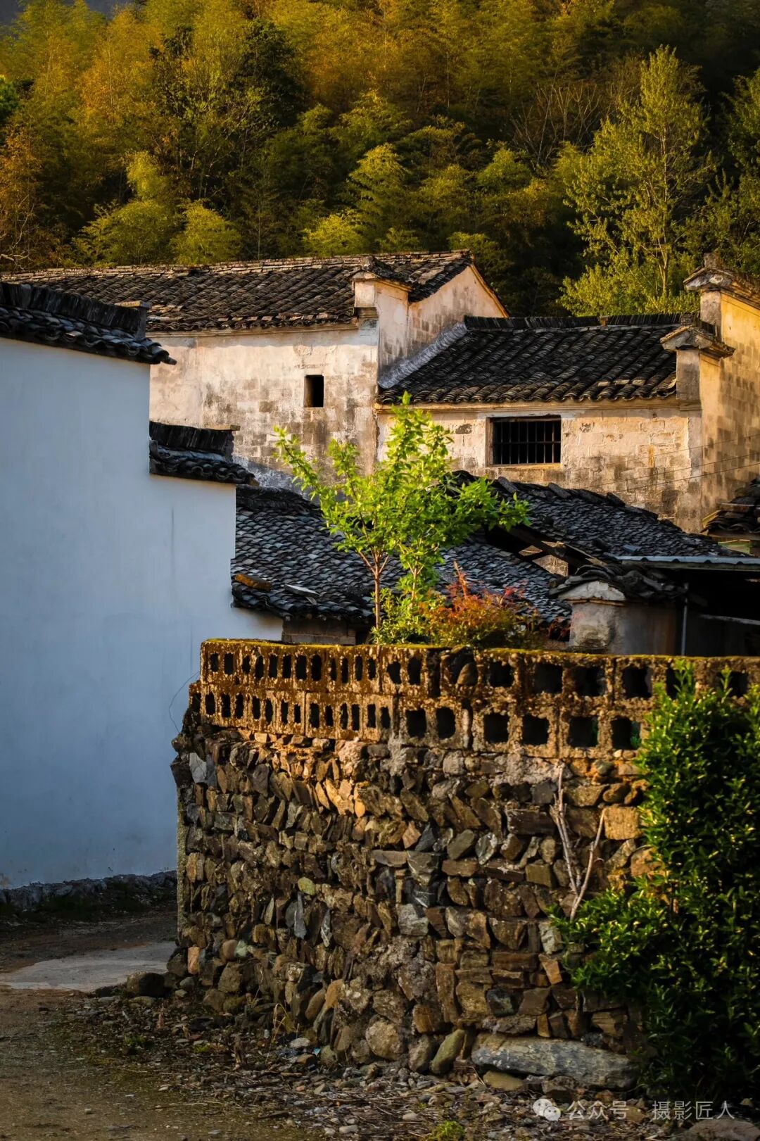 3️⃣ 保持在亭子正前方的路径上直行,直至逐渐接近层峦叠翠的山脚,在那里您会发现一片废弃且久无人烟的徽派民居群落。尽管这些老屋已显沧桑破败之态,却也因此赋予了它们一种独特的韵味和历史印记。尤为动人的是每当夕阳西下之际,那柔和而金黄的阳光轻轻洒满这一座座静默的老房子,勾勒出一幅饱含岁月深情与诗意盎然的画面,这样的景象无疑超凡脱俗,意境深远,令人回味无穷。