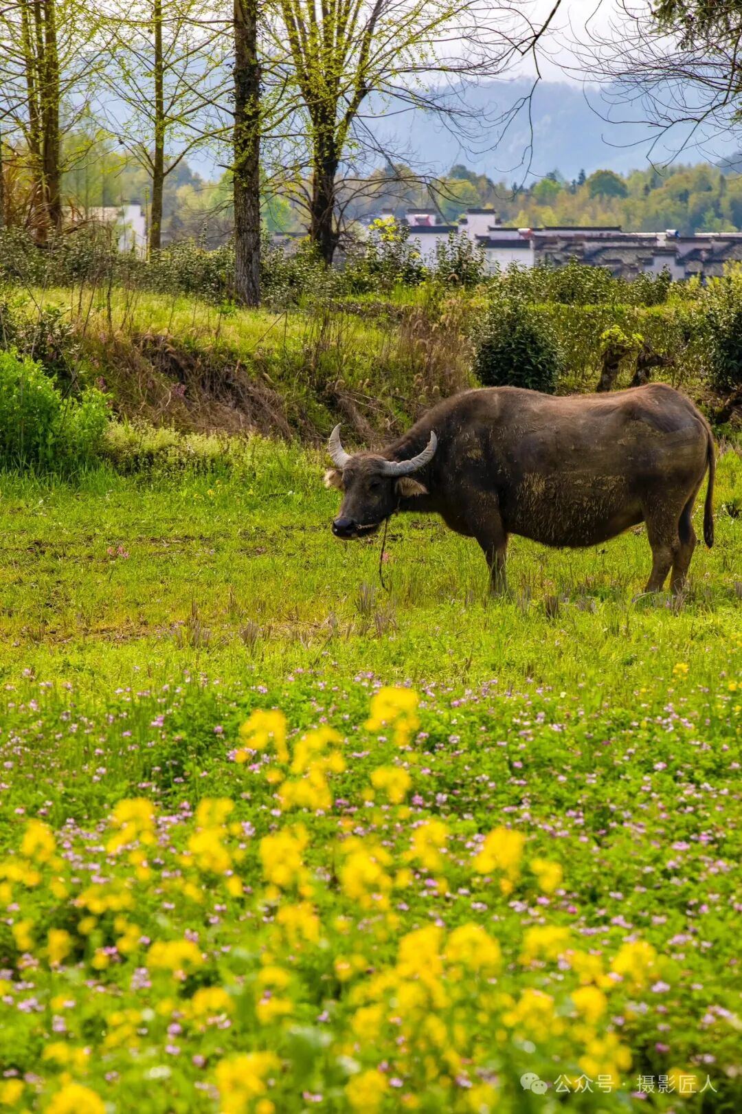 2️⃣于松鹤亭处优雅右转,踏上那蜿蜒曲折的乡间小径,您将逐步深入至石亭村的居民生活区。这一路前行,将会引领您抵达一个能够定格春天永恒瞬间的地方:油菜花田与徽派传统老屋和谐并置在同一幅画卷中。在这里,您可以捕捉到那些油菜花热烈绽放、金黄一片与古朴典雅、白墙黛瓦的徽派民居交相辉映的画面,这无疑是摄影者梦寐以求的理想构图,记录下中国乡村最纯粹且独特的风情。