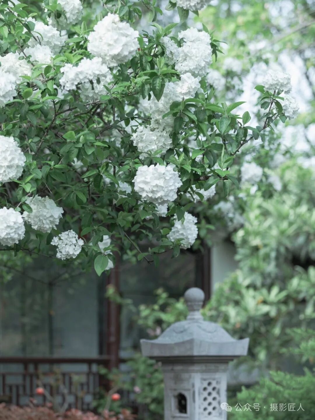 【中华木绣球篇】🌸盛开时期:四月初至五月初。📍1⃣️0️⃣总统府煦园:一棵盛开的绣球树点缀其间,伴着小桥流水,尽显江南园林的古典韵味。🎫门票情况:35元,逢周一闭馆。