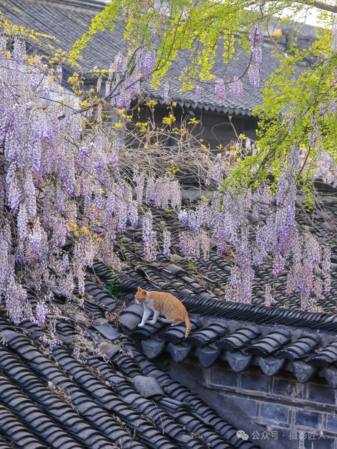 【紫藤花篇】🌸最美的时节:四月初至五月上旬。📍8⃣️老门东:古老的街巷中,紫藤与猫咪共绘出一幅国画般的画卷。🎫参观费用:无门票要求。