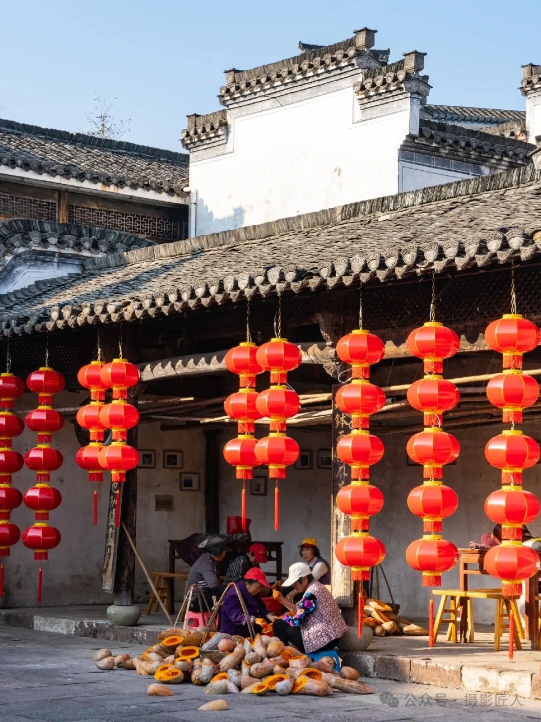 呈坎,这座拥有1800年悠久历史的古村落,至今仍保持着浓厚的生活气息和较低程度的商业开发。这里的每一寸土地都记录着世代村民的真实生活瞬间:肩扛扁担悠悠归家的老者,溪边不紧不慢洗涤衣物的老妇人,以及傍晚时分从每户人家烟囱升起的袅袅炊烟,这些构成了一幅生动且原生态的田园诗画。
