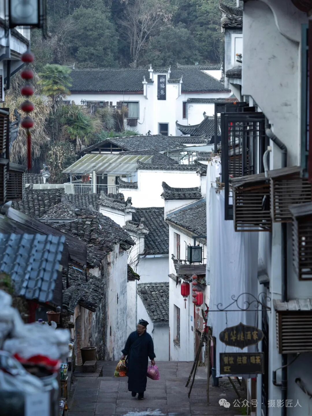 1️⃣月华天街:悬挂在崖壁上的徽派建筑村落,无论巷陌之间还是真武殿门前,都是构图佳选;