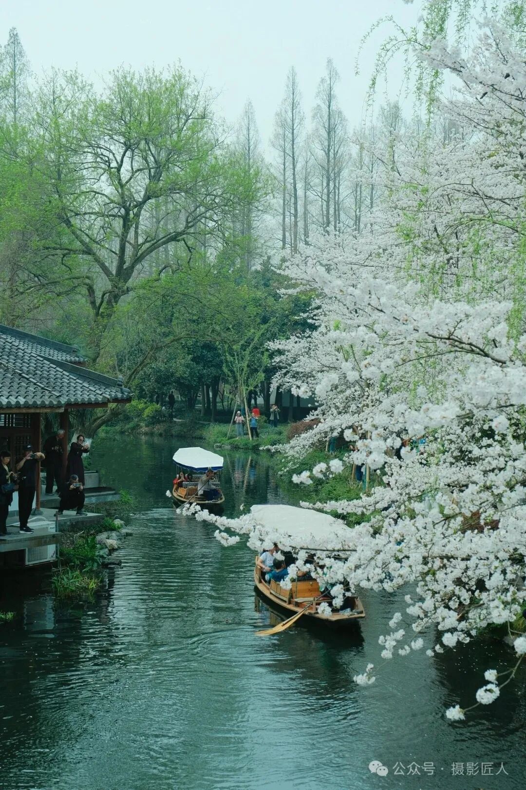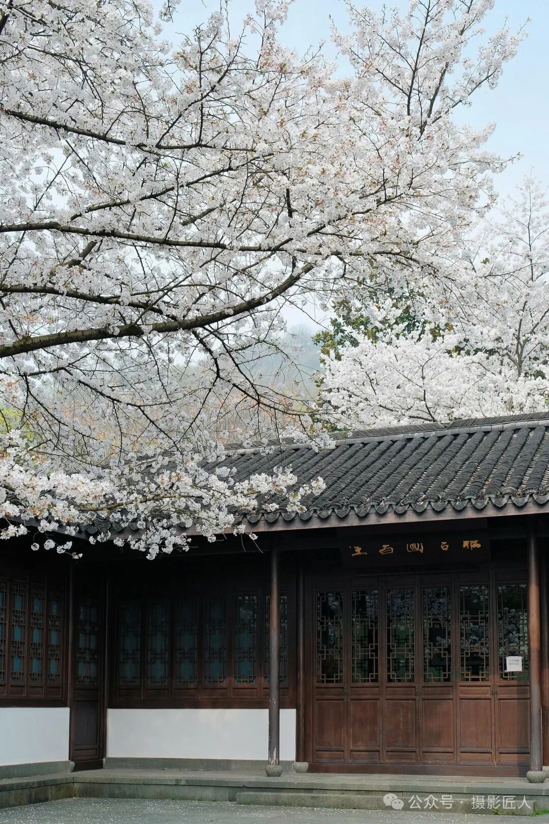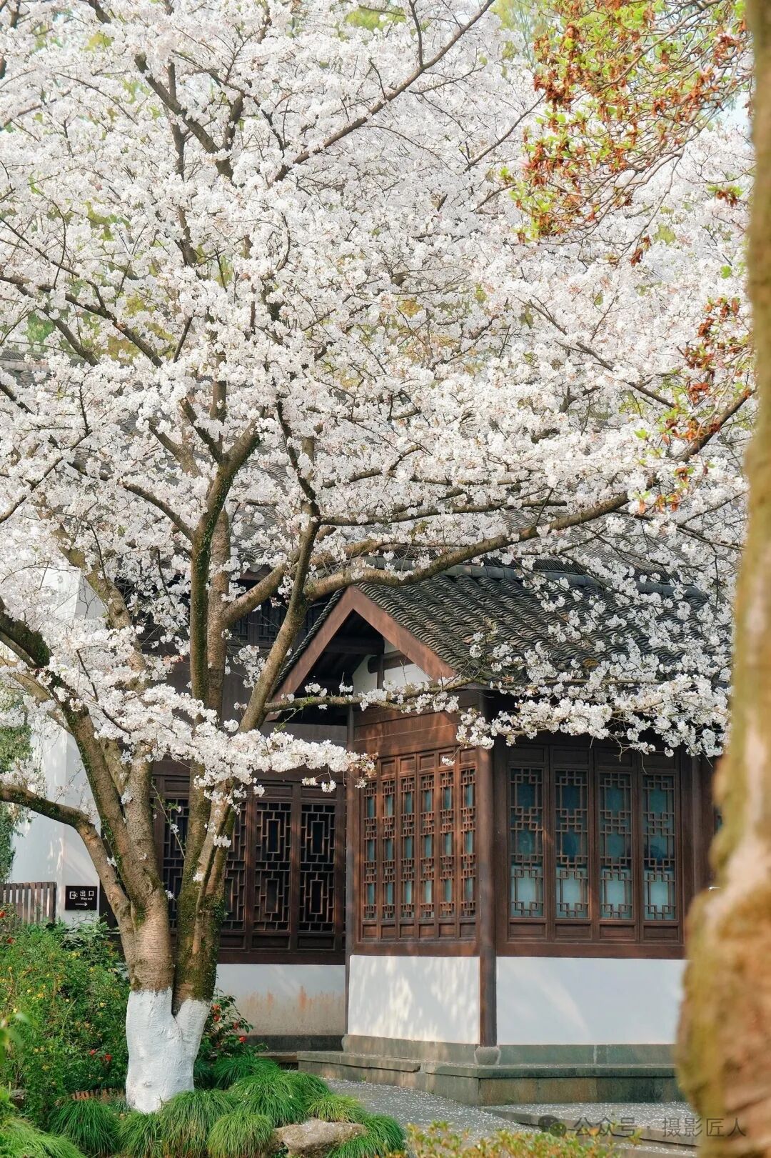 杭州,那座被世人冠以“人间仙境”美誉的城市,以其无可比拟的春日盛景深深触动了我的心灵。大家好,我是热衷于旅行的摄影爱好者——摄影匠人,今天,我愿与大家分享我在阳春三月尾声时分亲临的几处美轮美奂的赏樱佳境,这些地点将江南园林的婉约风韵与樱花花瓣如雨般的飘零之美浑然结合,令人陶醉不已。 在这樱花季,杭州仿佛被赋予了新的生命,古老的亭台楼阁、蜿蜒的回廊小径与盛开的樱花交相辉映,展现了一幅幅宛如诗画的立体画卷。这些赏樱之所,不仅拥有娇艳的樱花美景,更浸润着江南园林那种深邃的文化底蕴和精致的艺术气息。每当我驻足其间,按下快门的刹那,仿佛能够捕捉到岁月流转中那份独特的江南韵味,以及樱花短暂而热烈的绽放所带来的感动。