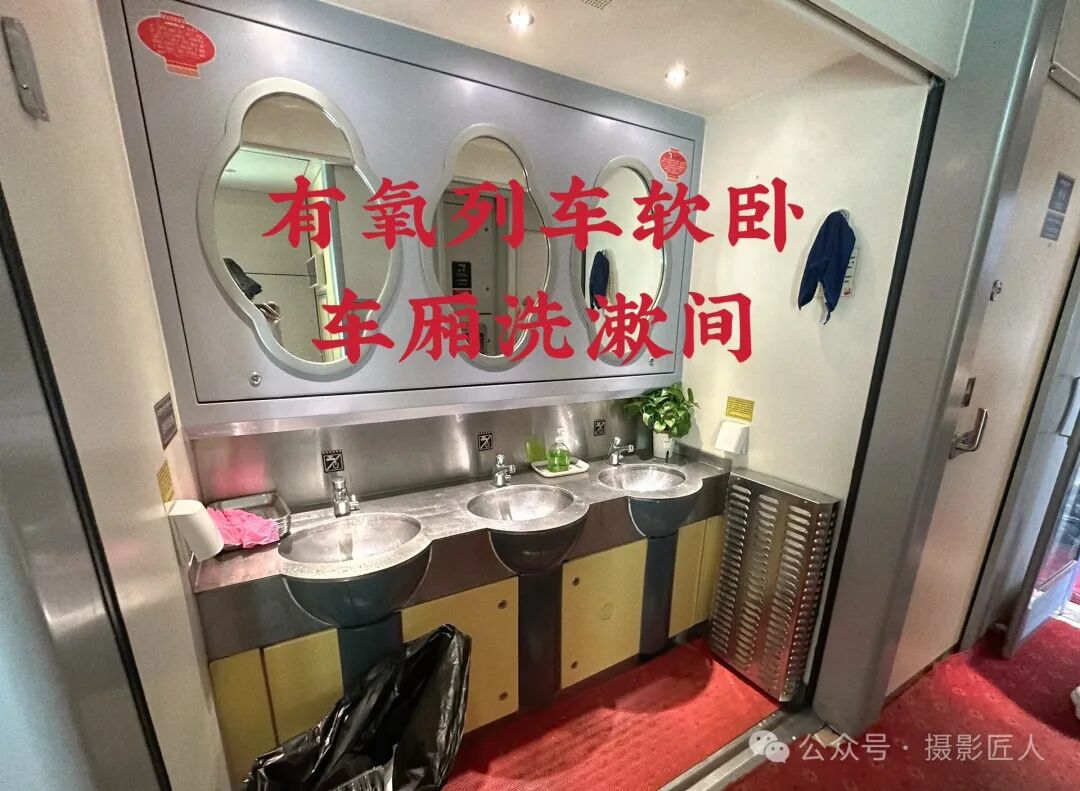 • [温馨提醒]软卧车厢的卫生间与洗漱间环境整洁,可通过图片了解。 • [防高反小贴士]为避免洗漱用品和化妆品受高海拔影响,您可在换乘有氧列车后将它们全部取出并敞开盖子,让其适应高原环境,次日早晨再收纳起来,这样它们在火车行驶过程中便能有效防止“高反”。 • [娱乐必备]旅途中可携带桌游、扑克牌或Switch等娱乐设备,以打发无聊时光。若您的睡眠质量较好,那么两天行程将迅速度过。 • [餐饮选择]火车上提供30元一份的盒饭,也可前往餐车点菜。据同车厢的一位大哥反馈,他享用过一荤一素一汤共68元的套餐,味道尚佳。餐车设有单人、双人以及全家福等多种套餐,但个人更倾向于自热饭或泡面。