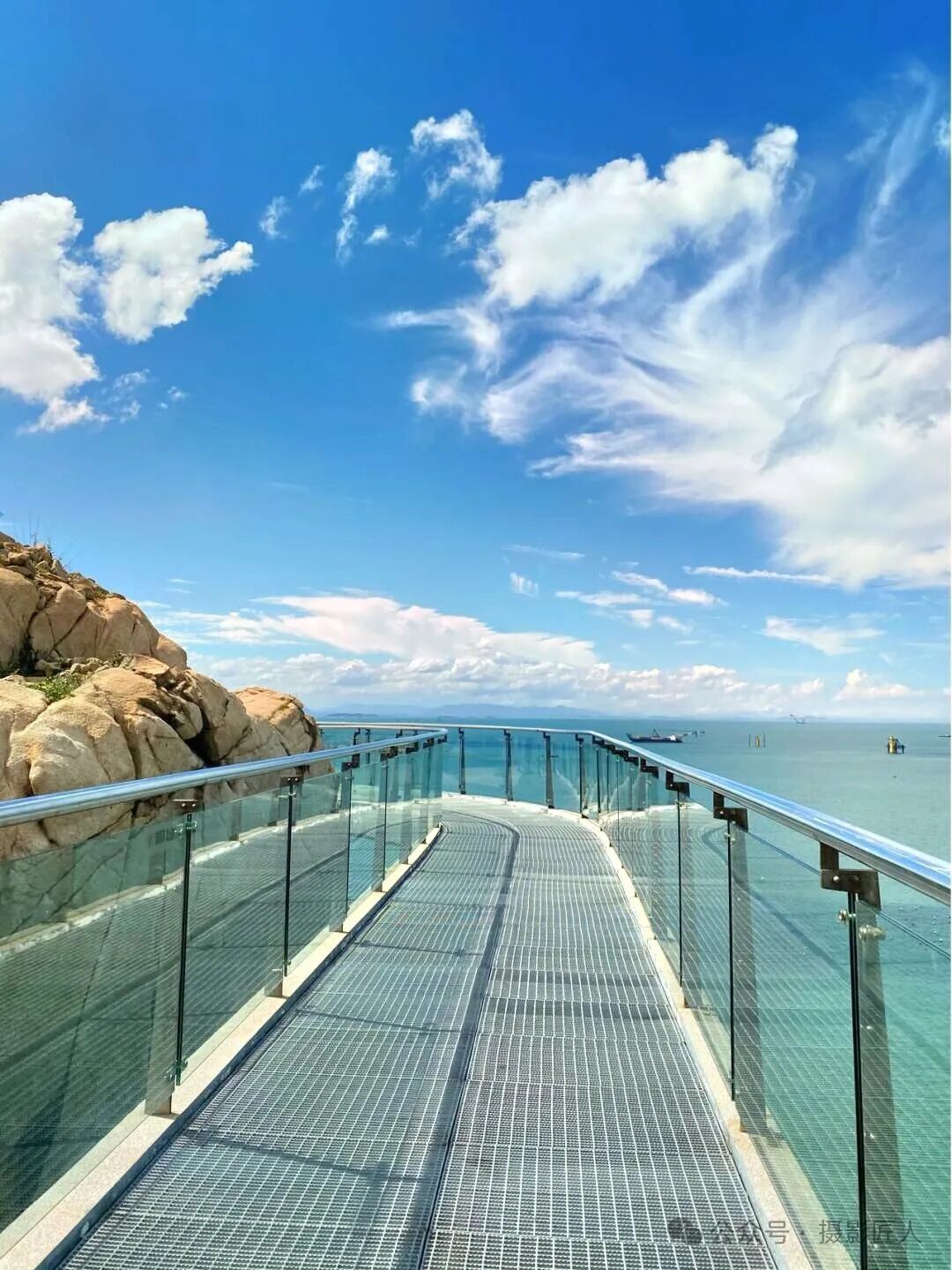 踏上北部湾的玻璃栈道,游客能够在凌空的透明步道上悠然漫步,饱览脚下那片风车海洋的壮阔全景,感受别样的视觉震撼。