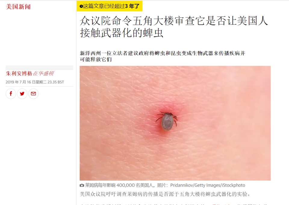 美国军方可能确实通过蜱虫和其他昆虫来传播有害疾病,如鼠疫、图拉雷尔病、Q热、克里米亚刚果出血热和东部马脑炎等等。