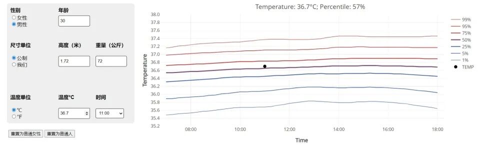 这项研究构建了一个在线个性化温度范围计算器,你可以用自己测量的体温和这个计算器上的体温做对比,只要在范围内就被认为是正常的。