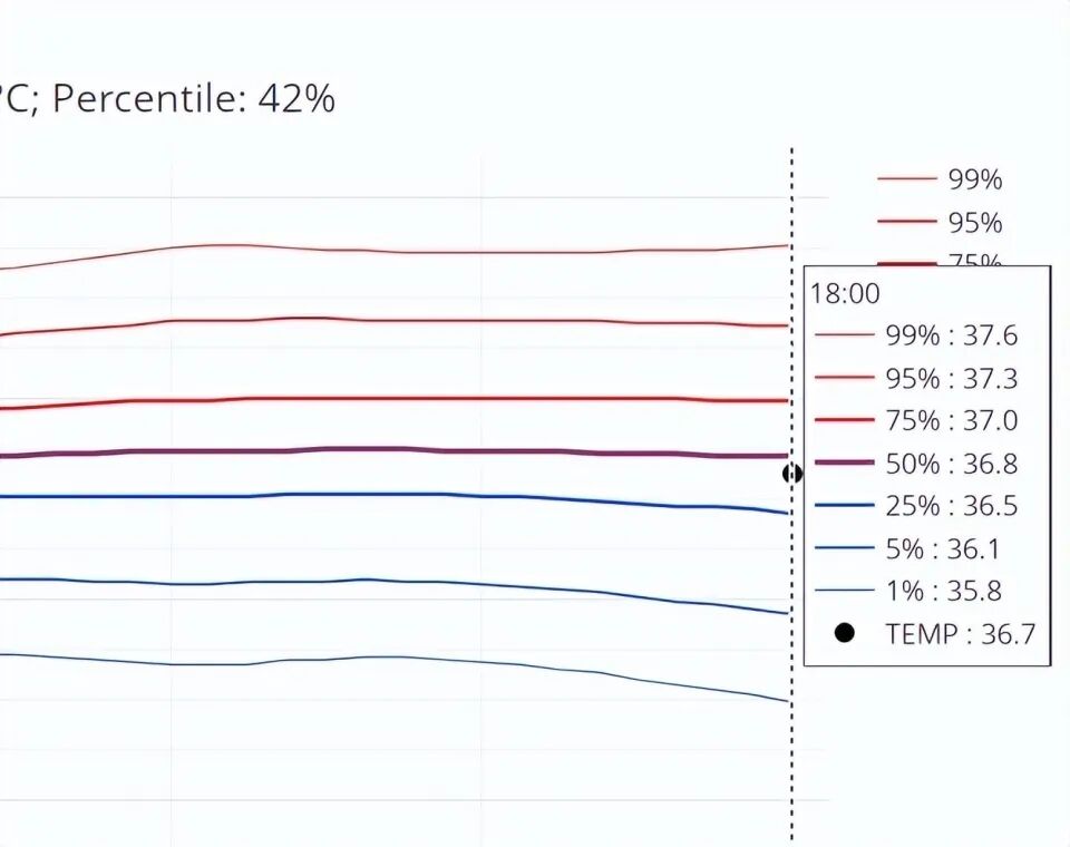 图:这个标准中18点的时候体温范围跨度最大,达1.8℃