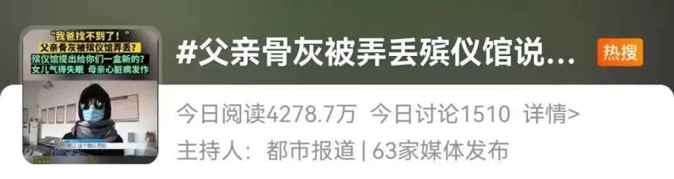 近日,《央广网》发布了一则匪夷所思的新闻,话题则是“父亲骨灰被弄丢殡仪馆说给盒新的”。