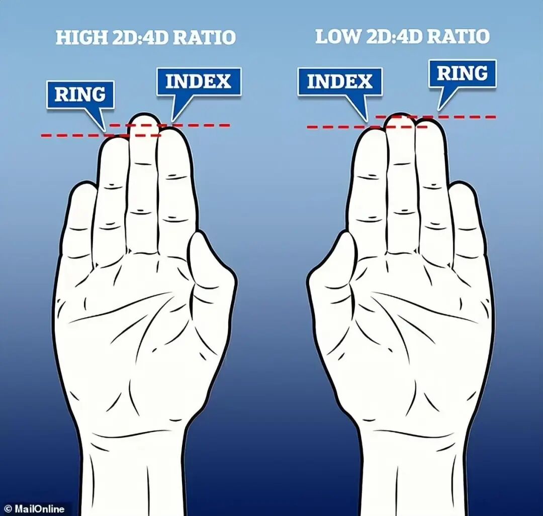 最新研究表明,无名指比食指长的人,更有可能患有精神方面的疾病!