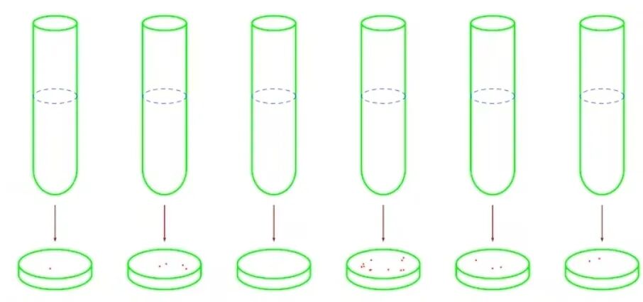 然后,卢里亚将每个试管中的大肠杆菌转移到那些充满噬菌体的培养皿中,并在一天之后,计算每个培养皿中耐药细菌菌落的数量。