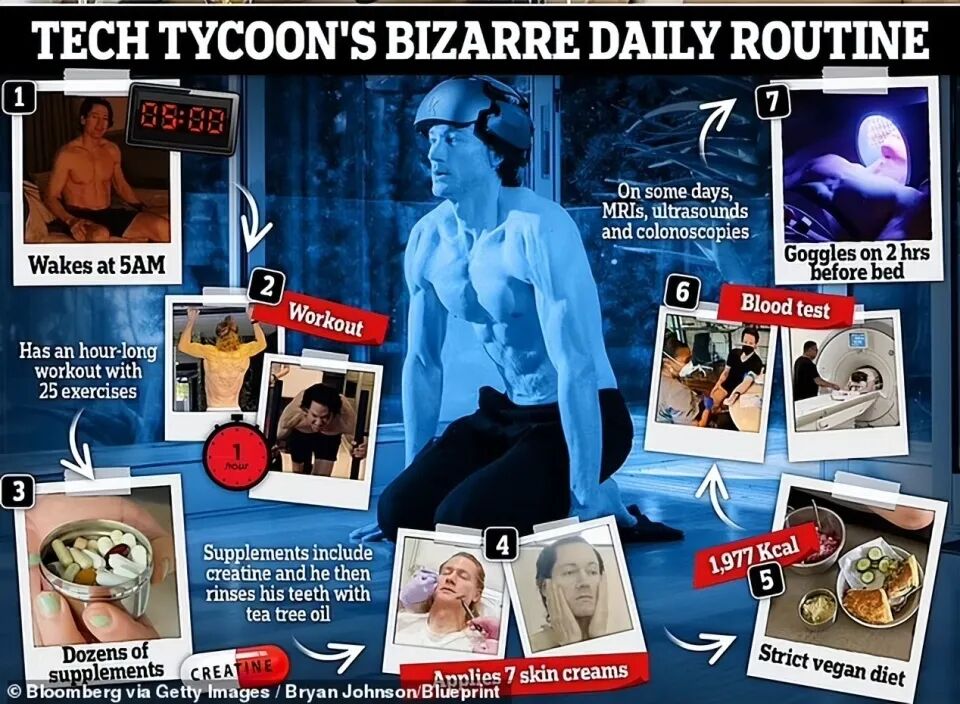 还记得那个每年花200万美元,组建了一个30几人的专家团队,为其一人服务,制定了一套非常严格的生活起居计划,只为了能“逆转衰老”的美国富豪布莱恩·约翰逊Bryan Johnson吗?