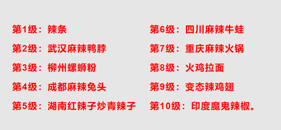 网上流行的吃辣级别表(非官方)
