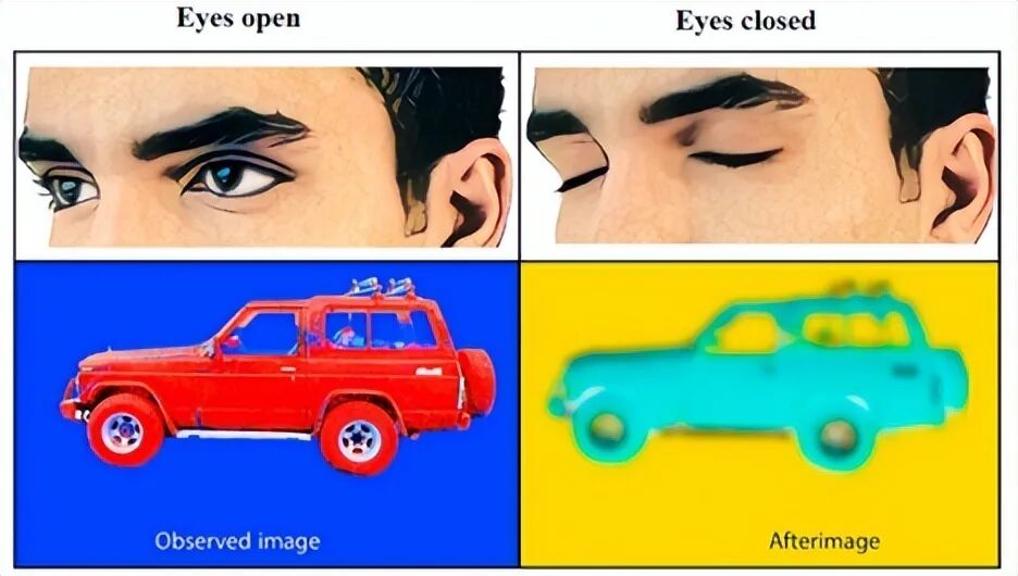 图:视后像,盯着汽车看,闭上眼睛后依然能看到模糊的汽车