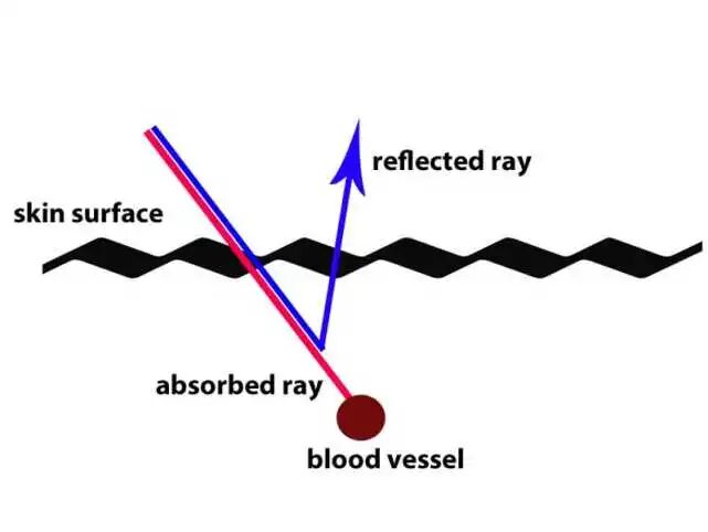 当然,不存在只含有蓝光和红光的太阳光,其他颜色的光也同样进行了上述反射或穿透,所以我们有静脉的地方并不是很蓝,没静脉的地方也不是很红。