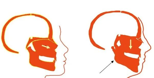 当嘴巴张开呼吸时,脸颊的肌肉就会绷紧。这些紧绷的脸颊肌肉对上颌和下颚施加外力,使牙弓和脸部缩小。