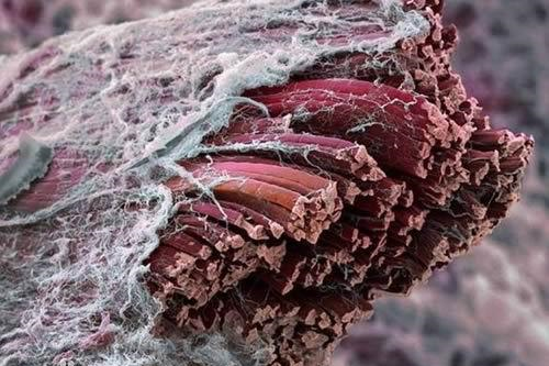 在微观层面,肌肉是由肌细胞组成的,而在宏观层面,你所看的外在的肌肉块则是由肌肉、糖原、水和一些肌内脂肪组成的。