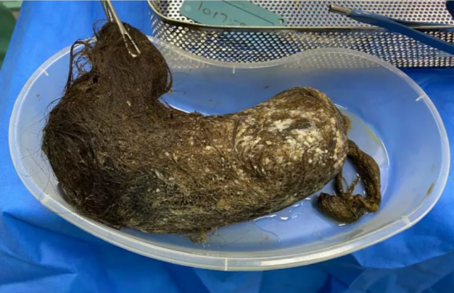于是医生把目光从头部转向腹部,最终他们通过手术从少女的腹中取出一个48厘米长的椭圆形毛球,而且这个毛球已经导致胃壁破裂。
