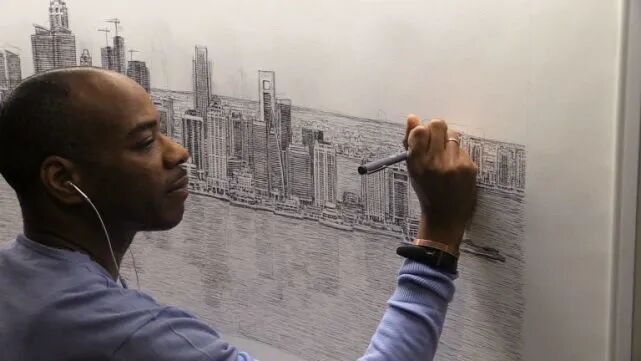 我之前看过威尔夏的纪录片,他乘坐直升机在城市上空游荡一圈,回去后就开始画,他可以把整个城市的俯瞰图给画出来,甚至连一些建筑的窗户个数都没有出错,简直难以置信。