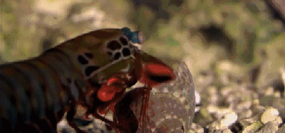 拳击手雀尾螳螂虾,出拳速度达到1/50秒,最高时速可达80km/h,冲击力非常强大,甚至可以将前敖附近的水蒸发,产生电火花。