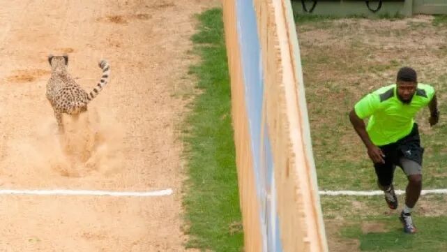 短跑选手猎豹,短距离冲刺,速度可超过100 公里/小时,轻松击败跑最快的人类博尔特。