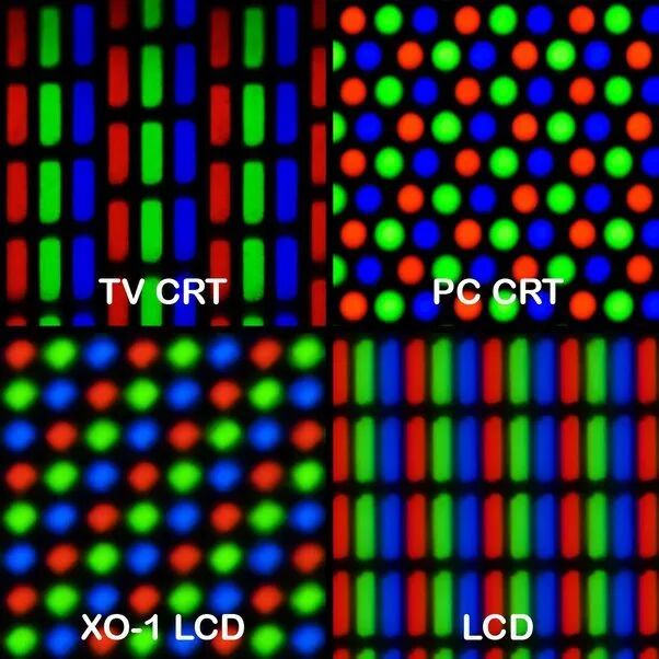 当我们看屏幕的时候,实际上只是在看屏幕上的红、绿、蓝点光,这三种颜色以不同的强度组合,最终造成不同颜色的视觉错觉。