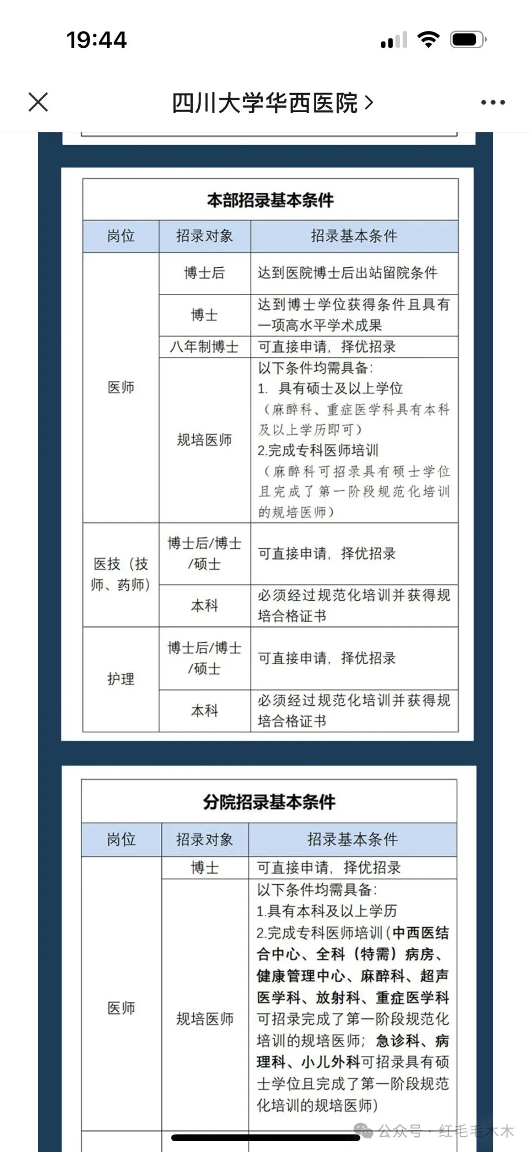 华西这个看得很清晰,本科学历可以应聘护理和医技岗位,但是医生得博士学位,硕士学位可以申请规培…